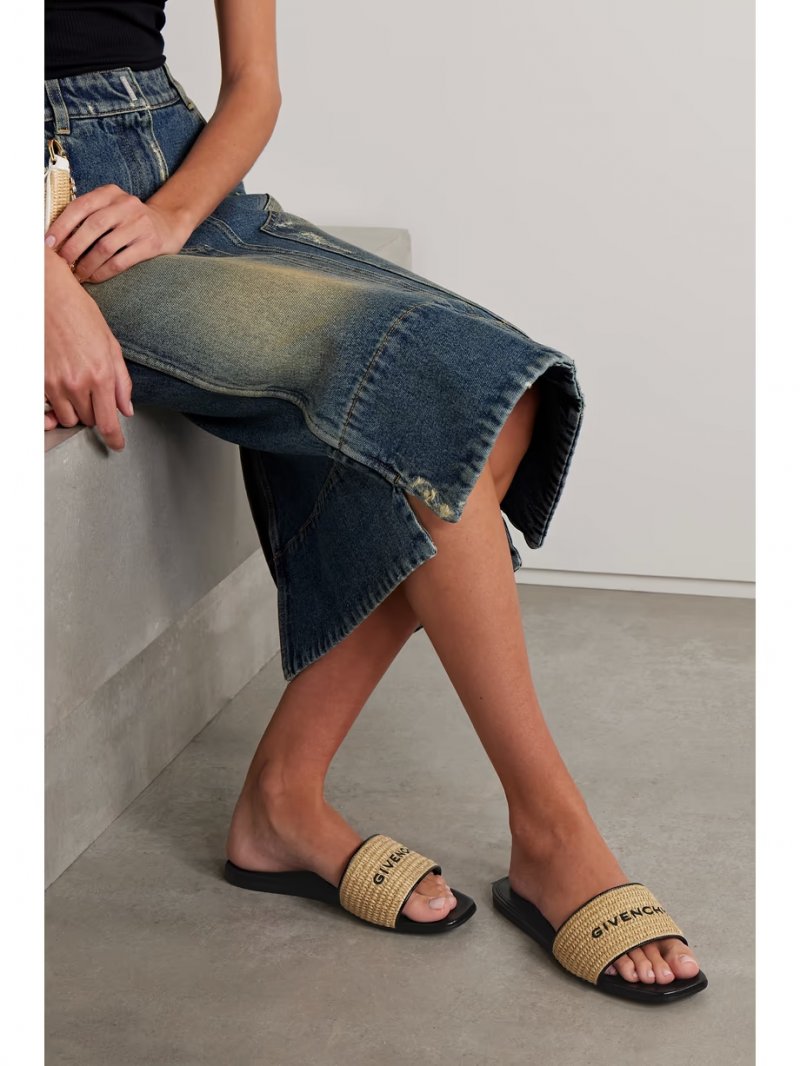 - Beige and black raffia, black leather