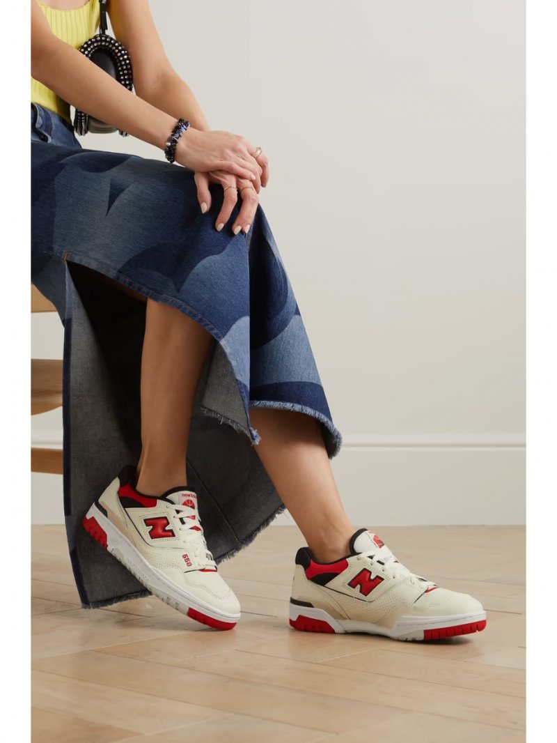 - Off-white and red leather, black mesh
