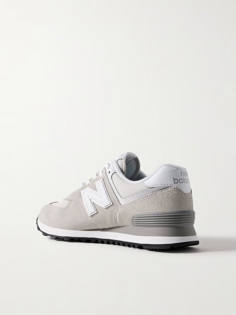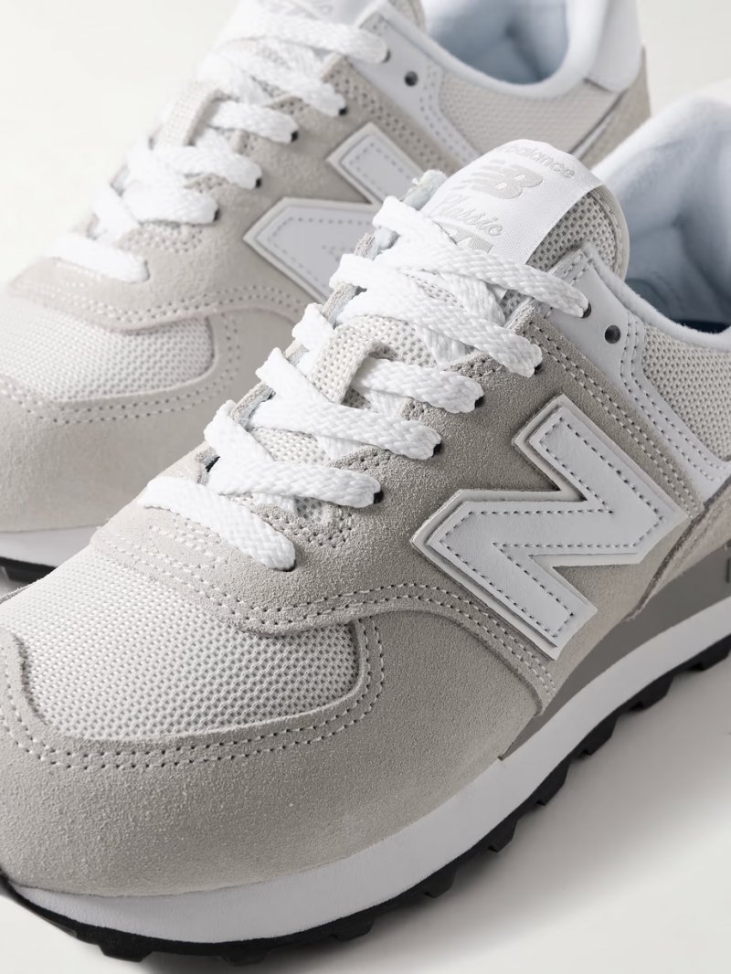 - Ivory mesh, mushroom suede, white leather