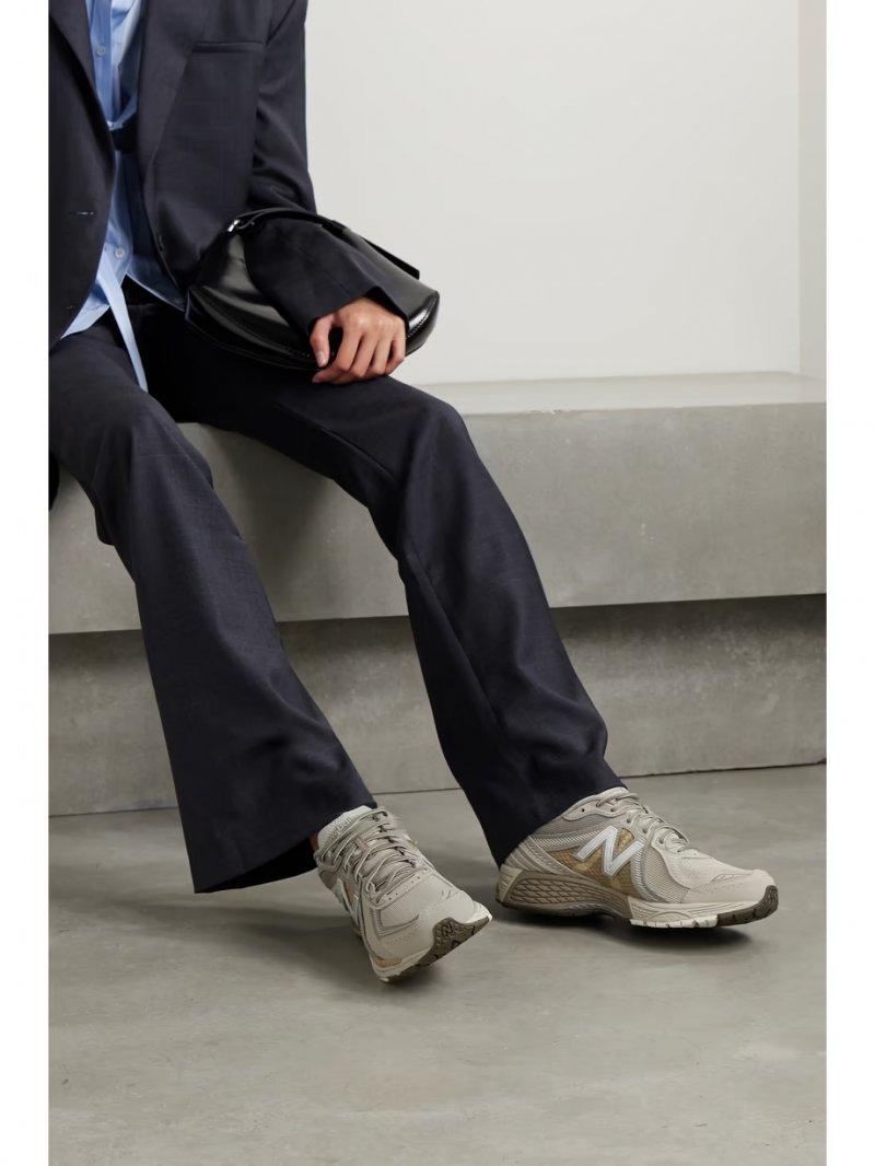 - Light-gray, mushroom and beige mesh, cream and light-gray leather