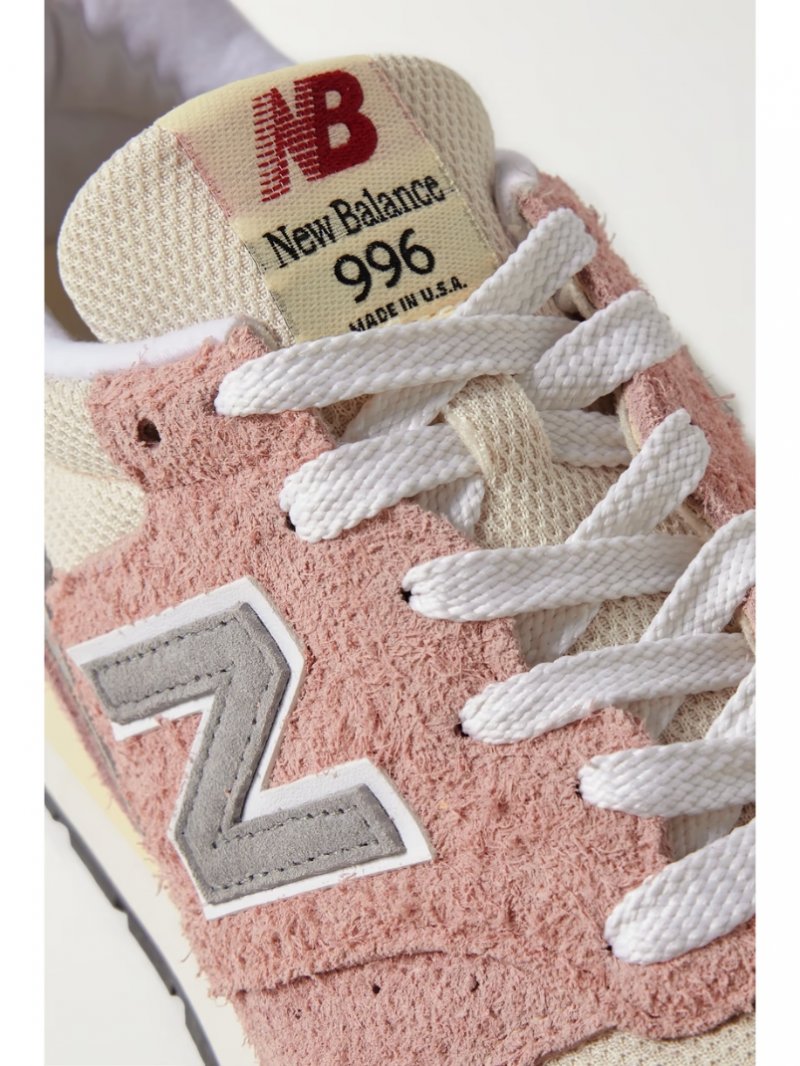 - Blush and gray suede (Pig), off-white mesh, white leather