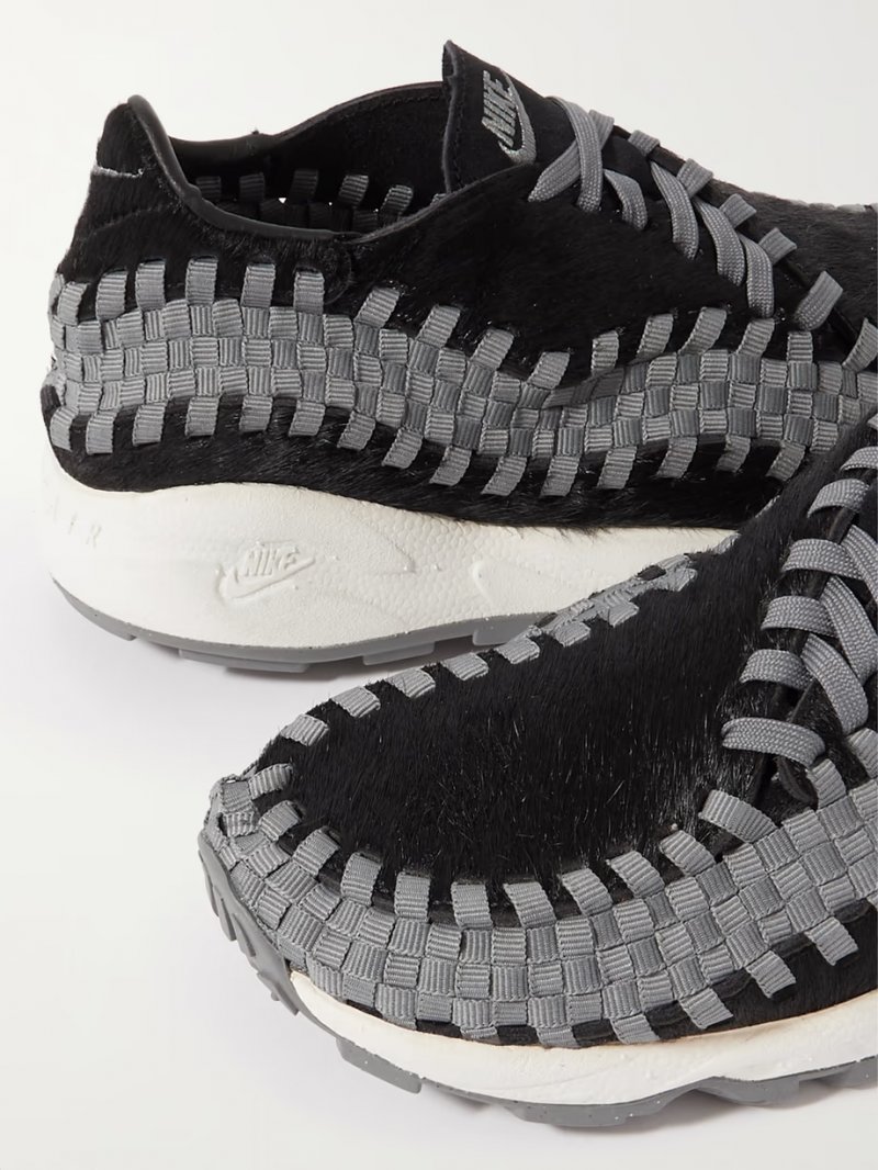 - Black calf hair, gray grosgrain