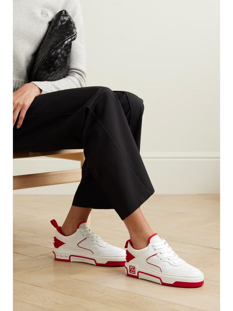- White leather and mesh, red suede