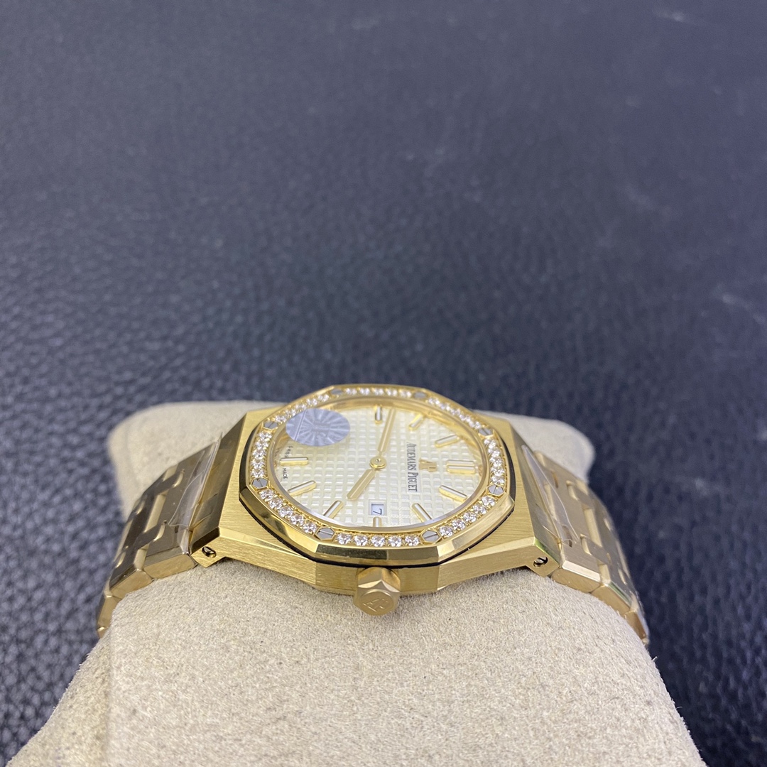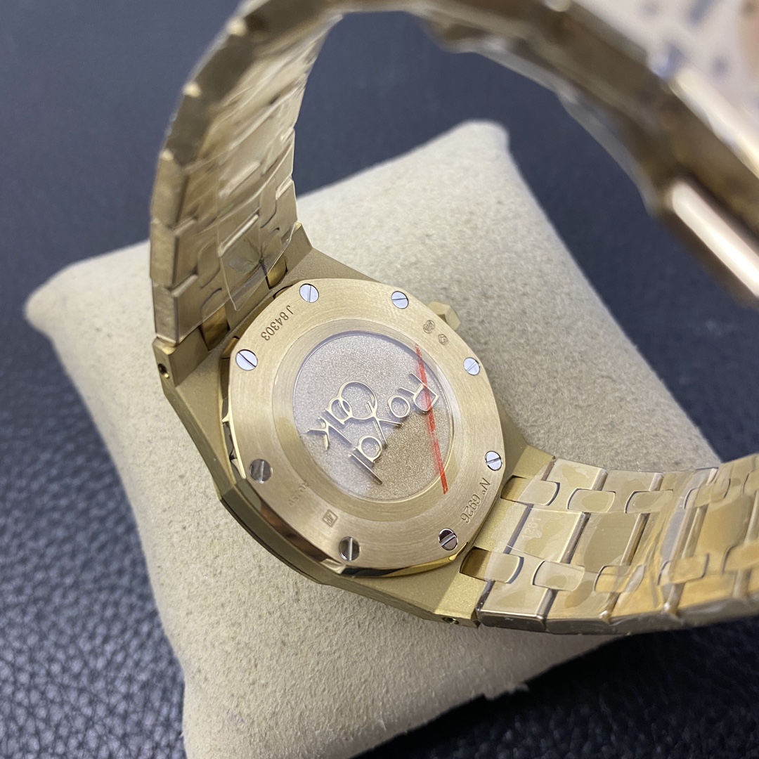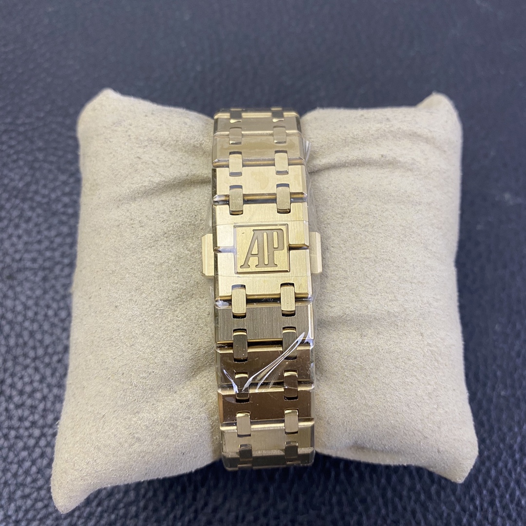 Thickness and structure are the same as the original. It features a replicated ETA quartz movement in gold color, with a 12 o’clock quick-set calendar. The bracelet has a dual-sided polished rose gold finish, and the buckle is identical to the original.