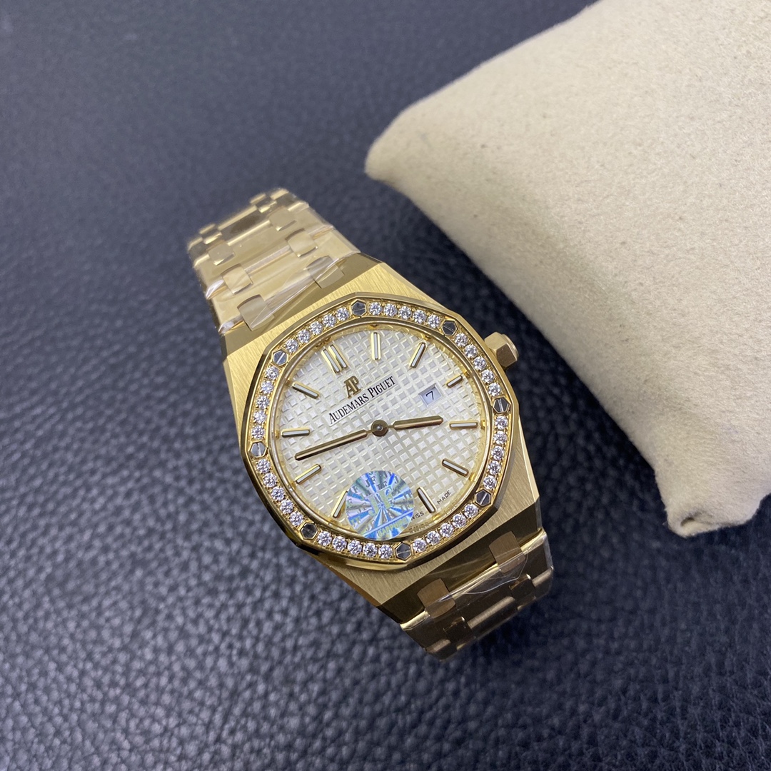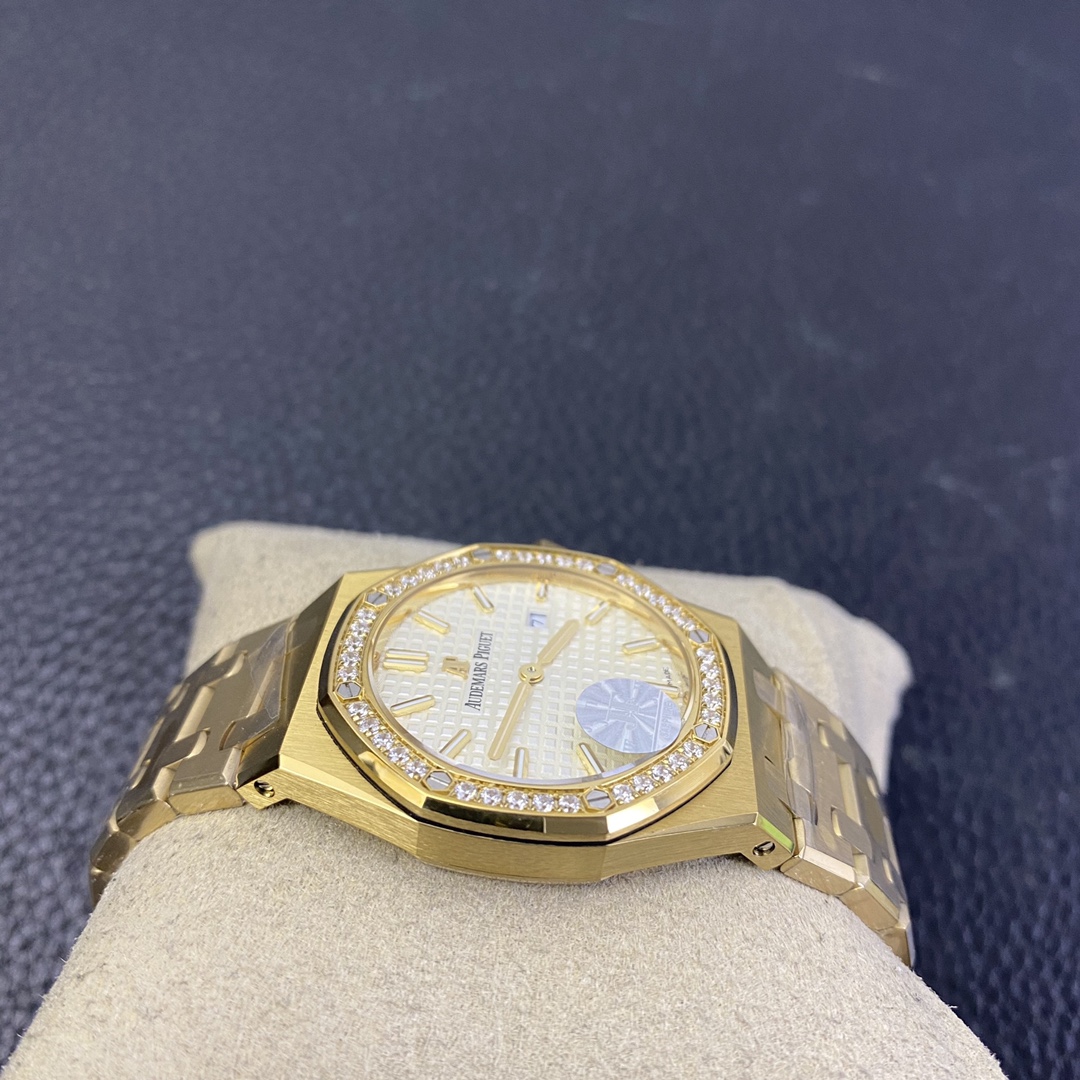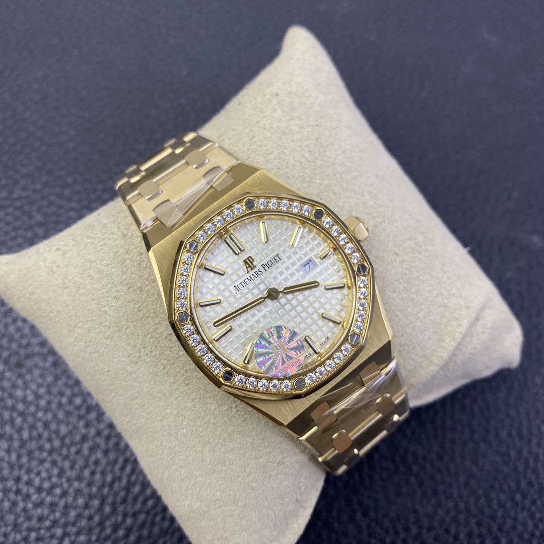 Thickness and structure are the same as the original. It features a replicated ETA quartz movement in gold color, with a 12 o’clock quick-set calendar. The bracelet has a dual-sided polished rose gold finish, and the buckle is identical to the original.