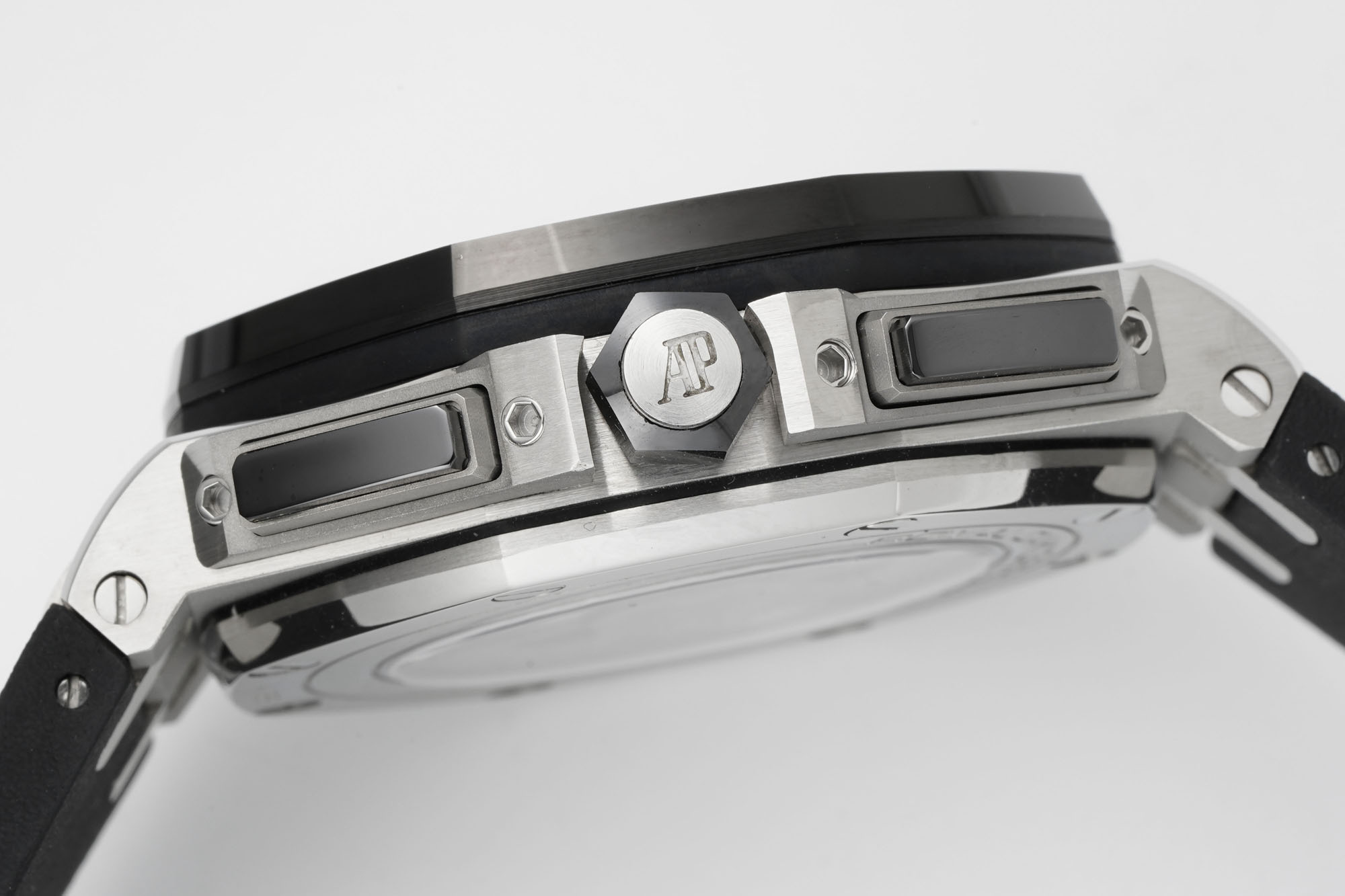 【Crown】The crown is made of hexagonal ceramic material, with a brushed and polished top. On the replica watch, the crown on the left controls the start and stop of the chronograph, while the crown on the right resets the chronograph. The crowns are prominently displayed, giving the watch a more imposing appearance.