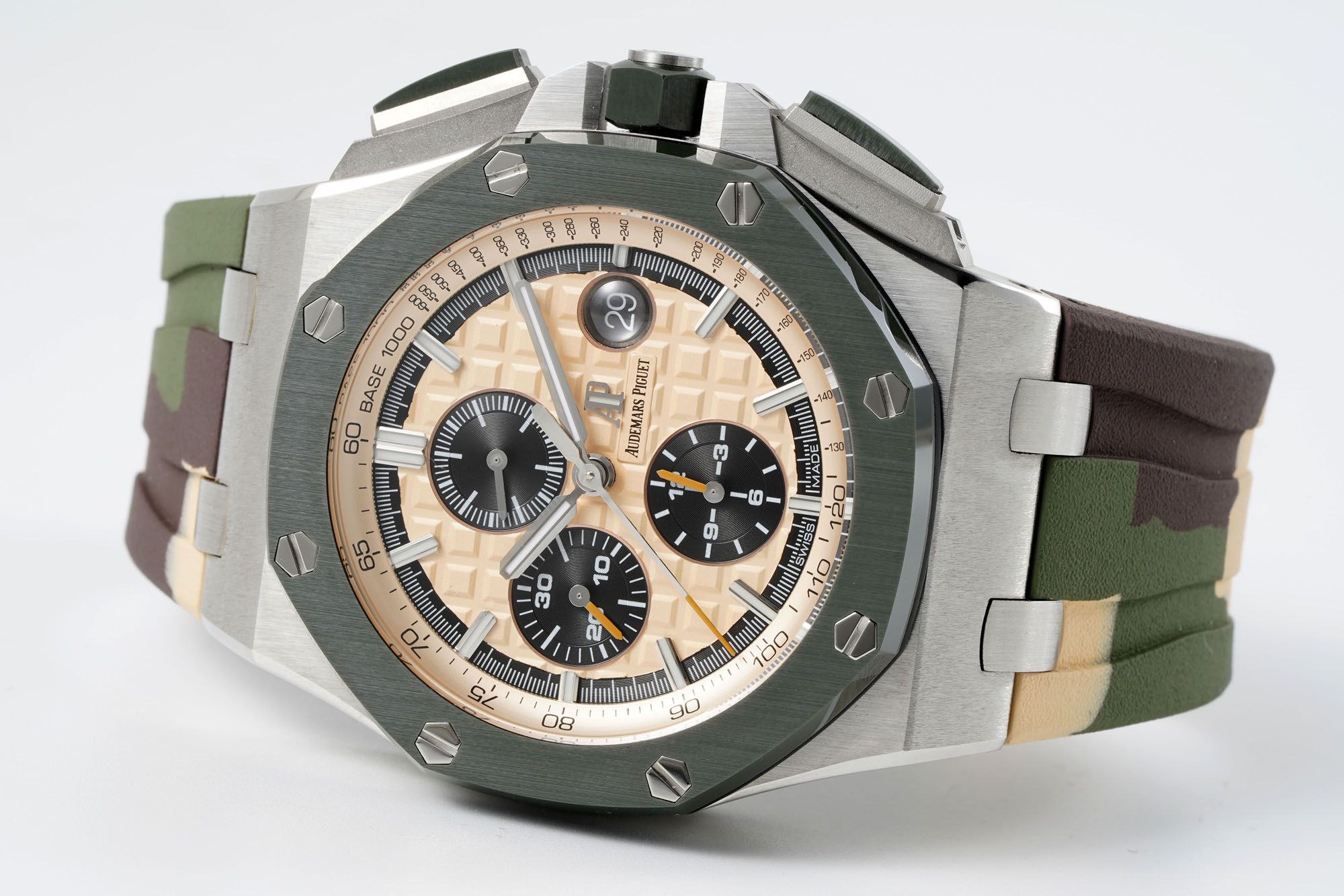 【Dial】The dial has a classic gray-black checkered pattern as the background, with distinct squares that create a sense of depth. The font style on the dial is well-balanced and shows no defects. The three sub-dials are highlighted with white scales above the gray-black case, and the red hands on two of the sub-dials are particularly eye-catching. The small seconds sub-dial is located at twelve o’clock, and there is a circular date window at three o’clock with a multi-faceted magnifying lens decoration. The TPE enlargement effect is consistent with the authentic piece and has a coating on the surface to achieve the effect of clearing data when enlarged. The font style of the date window matches the authentic piece. The sub-dials at six o’clock and nine o’clock are also chronograph sub-dials, and all hour markers on the dial are filled with imported luminescent materials, providing the same luminous effect as the original. The tips of the hands are decorated in red, and the other two hands are clean and neat without any burrs.