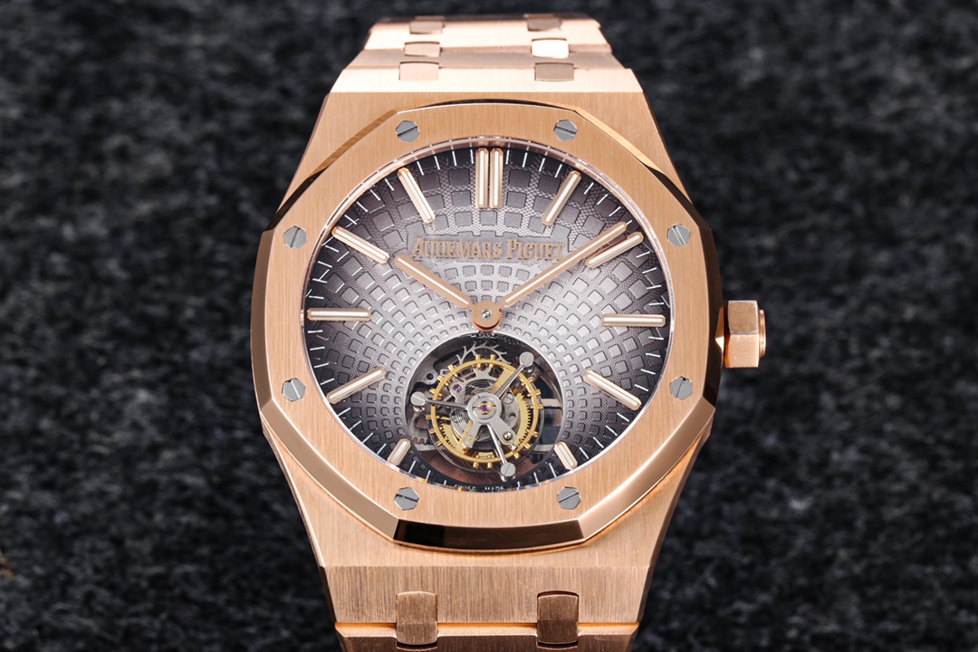 By combining a floating tourbillon with a central self-winding rotor, this watch ingeniously blends craftsmanship and aesthetic essence, showcasing the continuous evolution of Audemars Piguet’s watchmaking techniques. The iconic “Tapisserie” pattern on the Royal Oak’s dial has been redesigned with the tourbillon at 6 o’clock as the centerpiece, radiating outward. In the past, sports watches were considered entry-level models with practical functions. However, in recent years, as sports watches have become mainstream in the market, discerning consumers have also turned their attention to the field of sports watches. Basic functionality alone may not satisfy the expectations and demands of these players. However, among the sports watches offered by major brands in the market, there are relatively few works that combine sophistication, complexity, and durability like the Royal Oak Selfwinding Tourbillon. The tourbillon represents complexity in the realm of complicated functions, and it has a strong visual impact. Moreover, the automatic winding mechanism adds to the practicality of the watch. Its introduction fills the gap in the market for high-end complex sports watches that are currently lacking, thus attracting the attention of many collectors and enthusiasts.