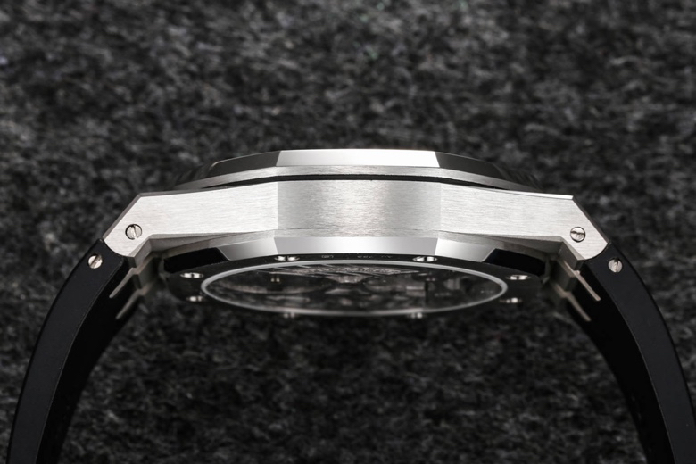 Audemars Piguet continues to lead the way in exploring innovation and unveiled the new Royal Oak Extra-Thin Tourbillon watch at the Geneva exhibition. The iconic “Tapisserie” checkered design has been reimagined into a fresh radiating pattern, offering a new visual experience. The sunburst radiating pattern originates from the tourbillon at 6 o’clock, with the size of the pattern gradually increasing from the center outwards, creating a captivating color gradient effect. The radiating pattern is brilliant and visually stunning. The checkered dial is complemented by white gold fluorescent three-dimensional hands, featuring Swiss superluminova, ensuring clear time visibility even in dark environments, providing great convenience.