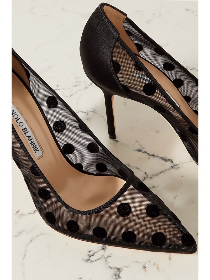 - Black mesh and satin