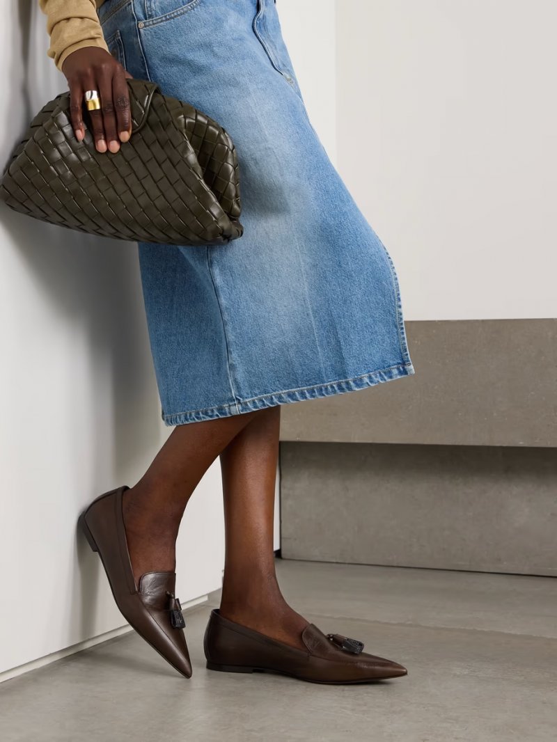 • Bead-embellished tassled leather loafers