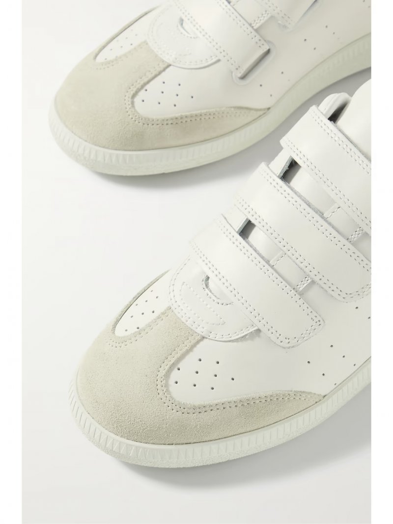 - White and camel leather (Cow), light-gray suede (Sheep)