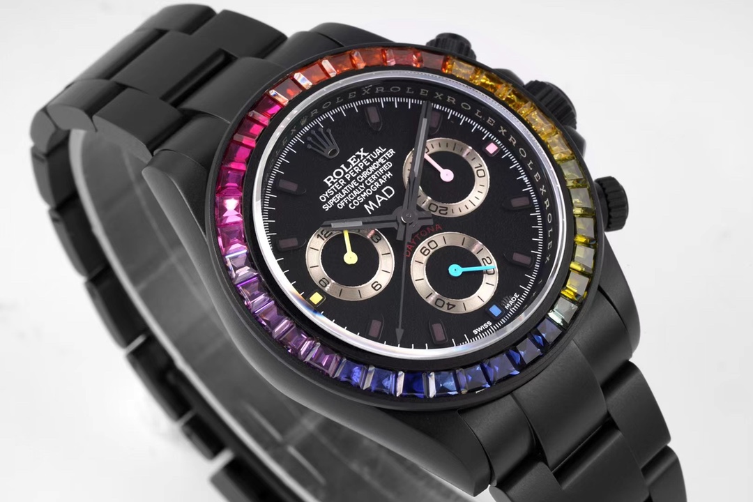 This Rolex Daytona series watch showcases a 40mm size and classic design, exuding a sense of stability and fashion for men. Equipped with a Swiss automatic movement, it ensures precise and reliable timekeeping. The watch features hour, minute, and second functions, meeting daily timekeeping needs. With a water resistance of 50 meters, the watch is suitable for waterproof demands in daily life, such as handwashing and light rain. The sapphire crystal glass protects the dial and provides a clear view. The folding clasp design allows for easy wearing and adjustment of the bracelet length, enhancing comfort. The stainless steel case exhibits durability and a high-quality feel. Paired with a stainless steel bracelet, it presents a harmonious aesthetic. This Rolex Daytona series watch, with its sporty style and exceptional performance, is an ideal choice for men pursuing excellent quality and a fashionable style.