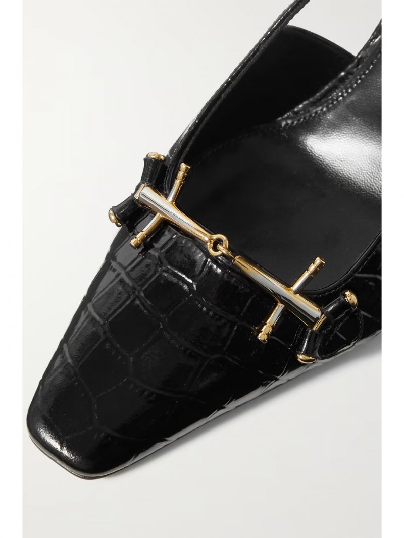 - Black croc-effect leather