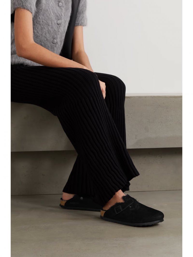 - Black suede (Cow) and shearling (Lamb)