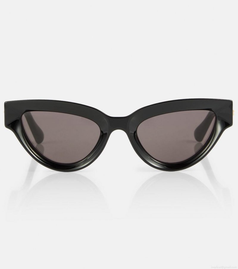 Angular proportions are synonymous with Bottega Veneta's streamlined approach, represented by the sharp silhouette of these cat-eye sunglasses. This black acetate style has UV-protective tinted lenses and gold-tone plaque detailing on the curved arms.