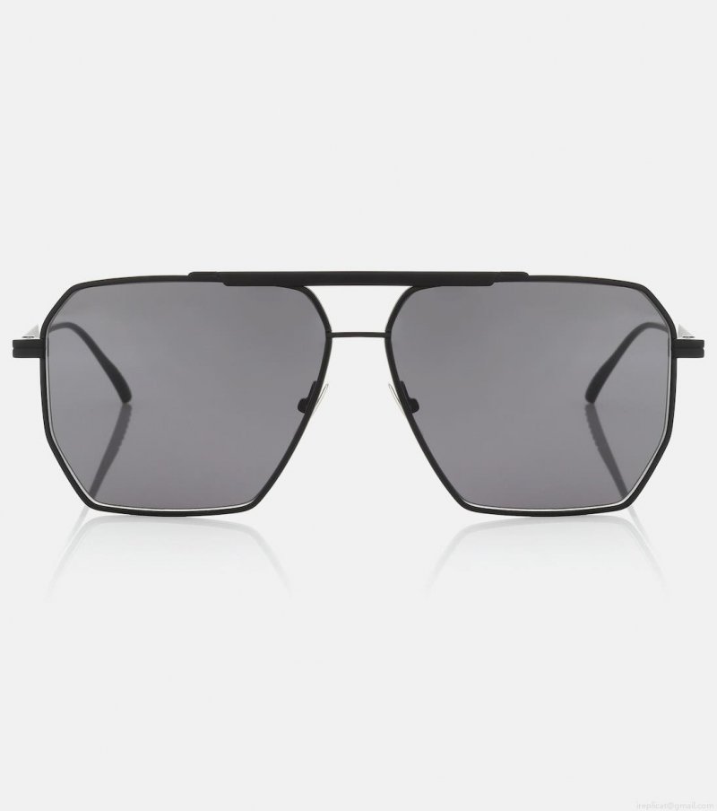 With sharp angles, Bottega Veneta gives these timeless black sunglasses a contemporary update. Made from metal with sleek lightweight frames and adjustable nose-pads for comfort, they're shaped to an artfully squared aviator silhouette. Keep yours safe in the iconic intrecciato-woven pouch.