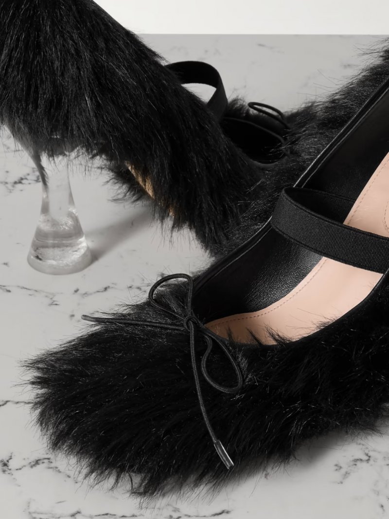 / Bow-embellished faux-fur pumps