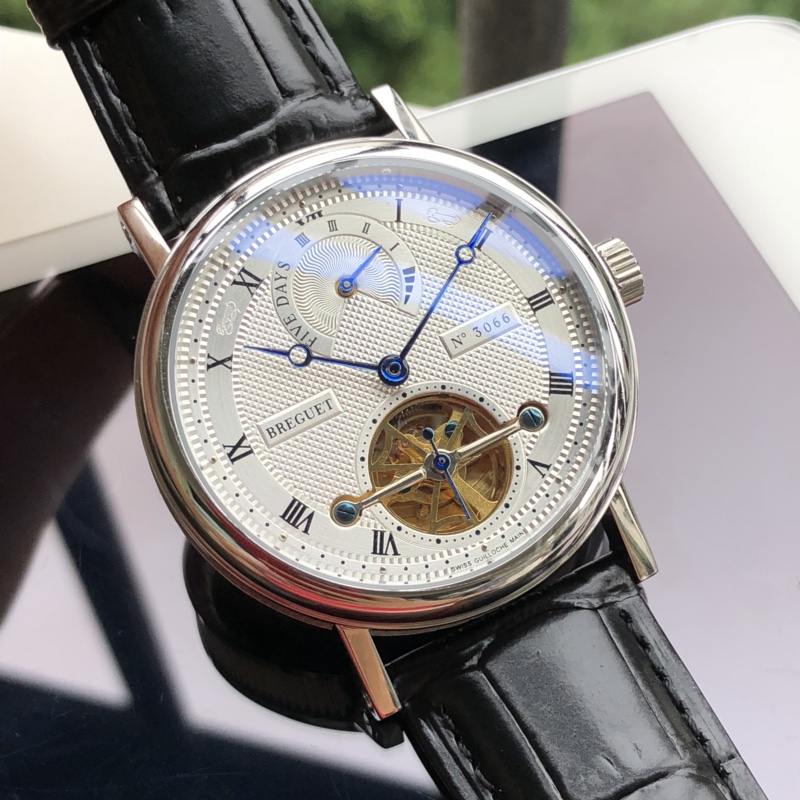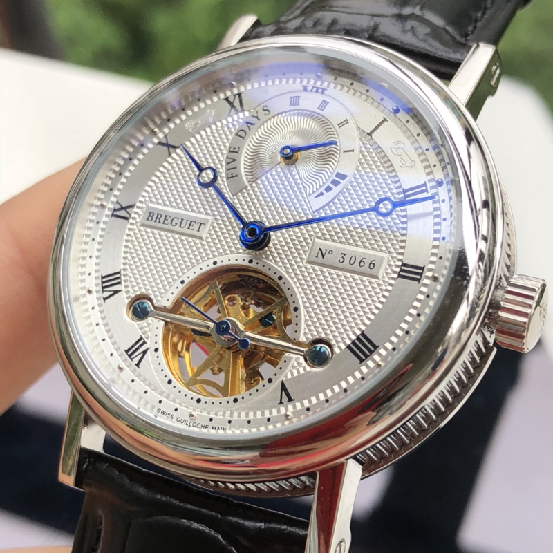This is a classic Breguet series wristwatch, with a case made of 316L stainless steel, offering superior waterproof performance and excellent water resistance. It is equipped with a top-tier mechanical movement. The strap is made of imported calfskin, resistant to sweat and corrosion. The dial features a highly durable mineral crystal mirror, satisfying your visual enjoyment. The overall case design exhibits a strong three-dimensional sense and exquisite craftsmanship. Dimensions: Diameter 43mm, thickness 14mm.