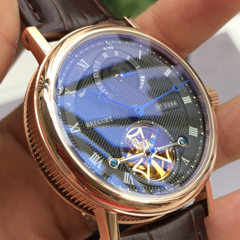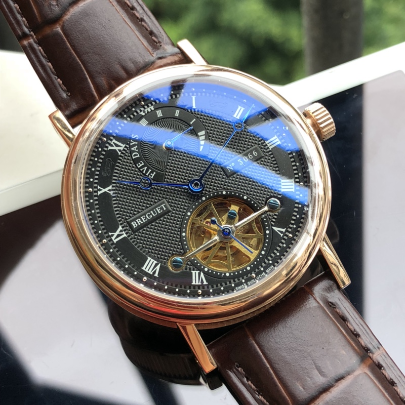 This is a classic Breguet series wristwatch, with a case made of 316L stainless steel, offering superior waterproof performance and excellent water resistance. It is equipped with a top-tier mechanical movement. The strap is made of imported calfskin, resistant to sweat and corrosion. The dial features a highly durable mineral crystal mirror, satisfying your visual enjoyment. The overall case design exhibits a strong three-dimensional sense and exquisite craftsmanship. Dimensions: Diameter 43mm, thickness 14mm.