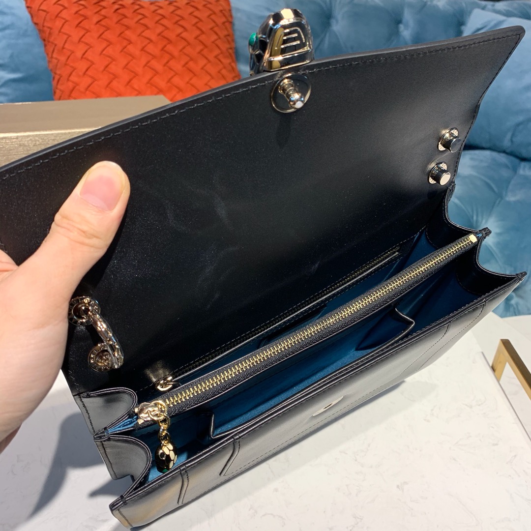 Introducing the BULGARI original single-layer 27cm handbag, now with an upgraded version. It features high-quality imported Italian cowhide leather, making it an absolute must-have from the BULGARI Serpenti collection. This unique piece has a simple and elegant design, with a sophisticated jewel snakehead that exudes charm. The enamel snakehead, combined with the gold chain, creates a fashionable and luxurious look. The peacock stone snakehead eyes add a touch of liveliness, effortlessly enhancing your outfit.