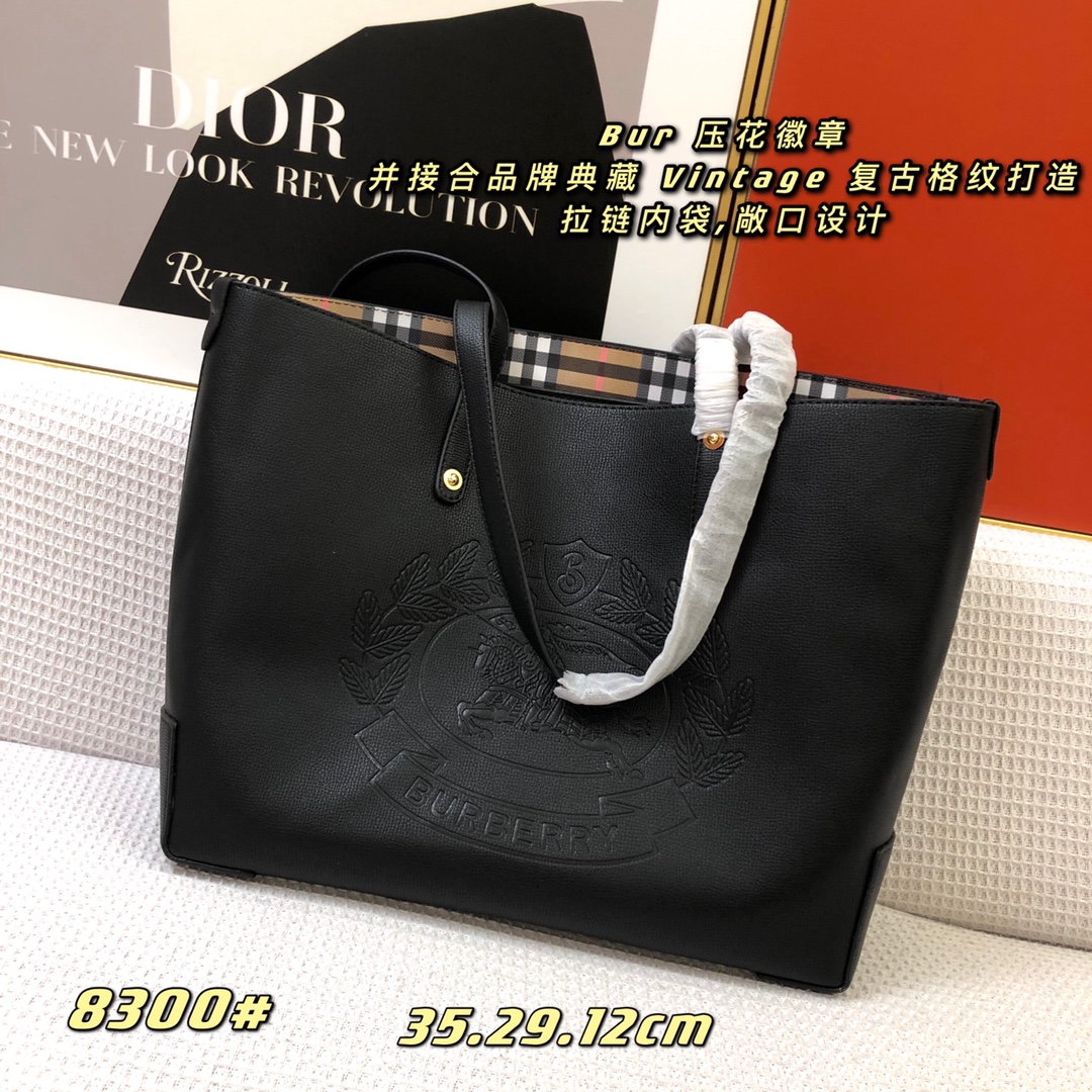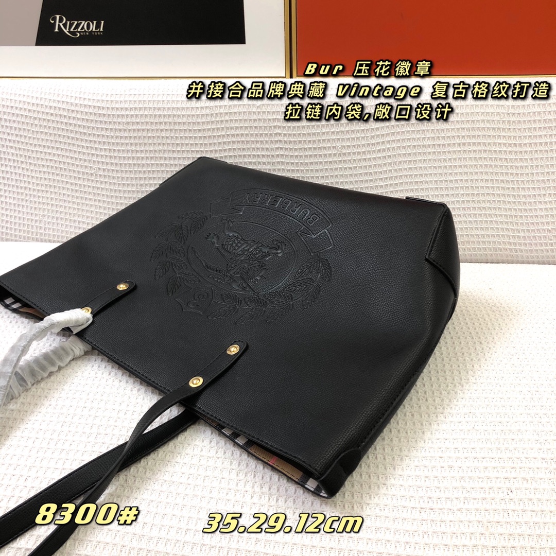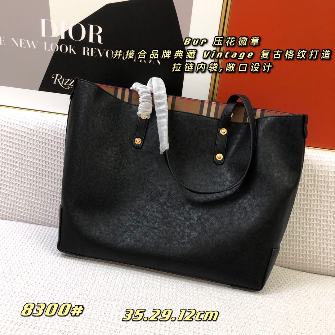 【Burberry’s Top-grade Original】 This handbag features a debossed Burberry logo and combines it with the brand’s iconic Vintage check pattern, creating a vintage and nostalgic design. It has a zippered inner pocket and an open-top design, with the Burberry lettering debossed on the front.