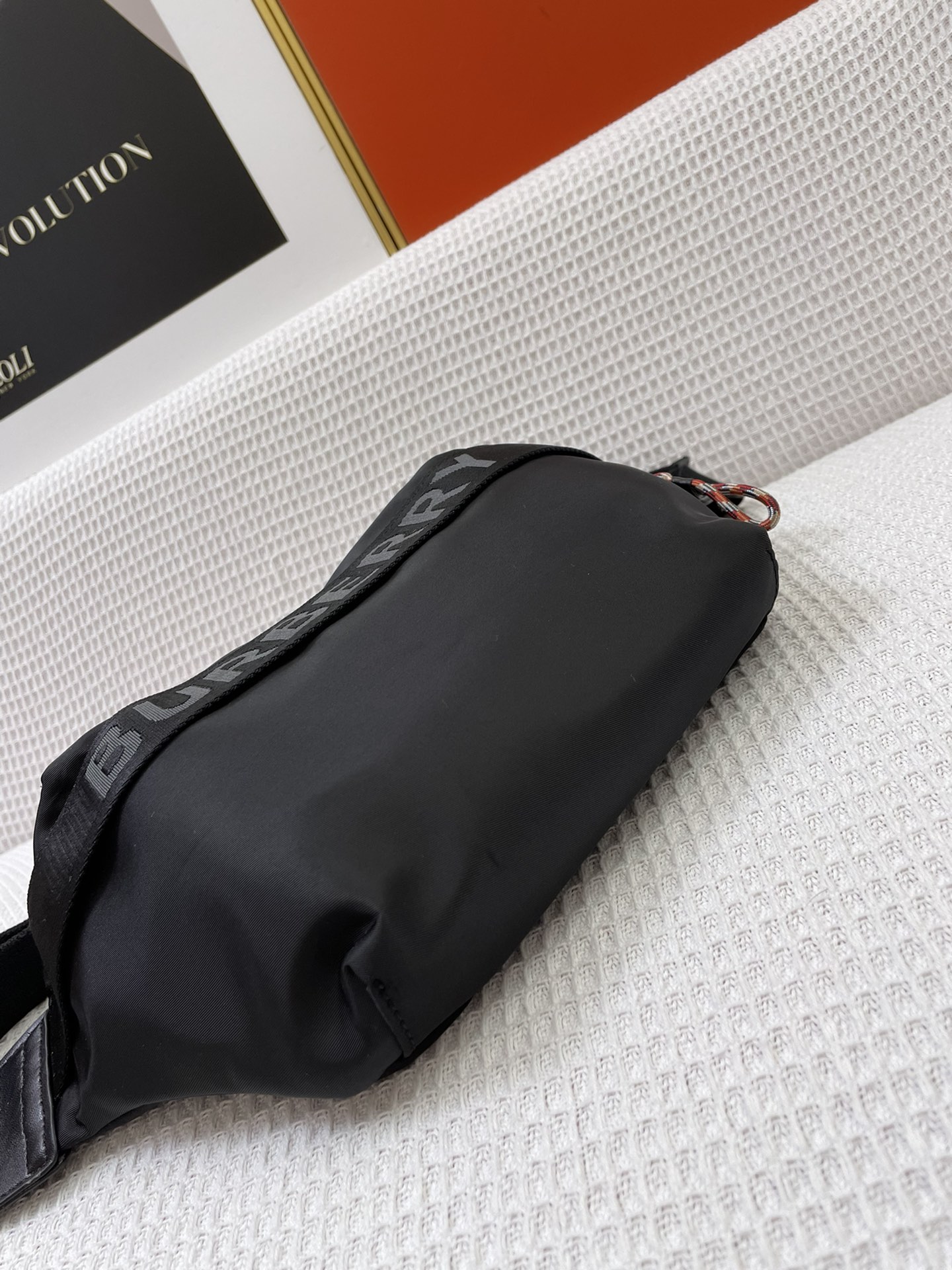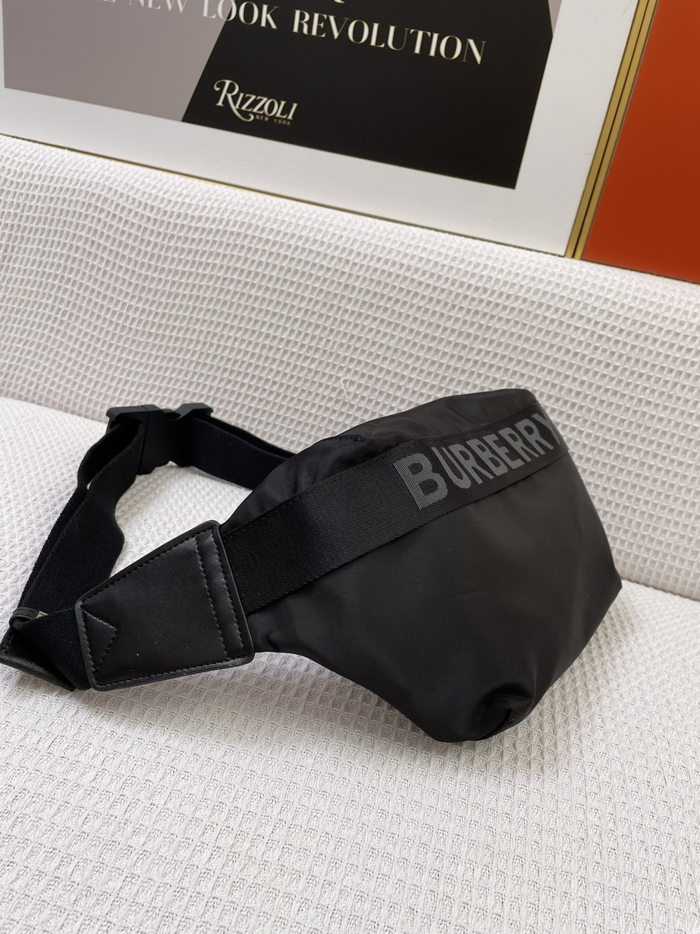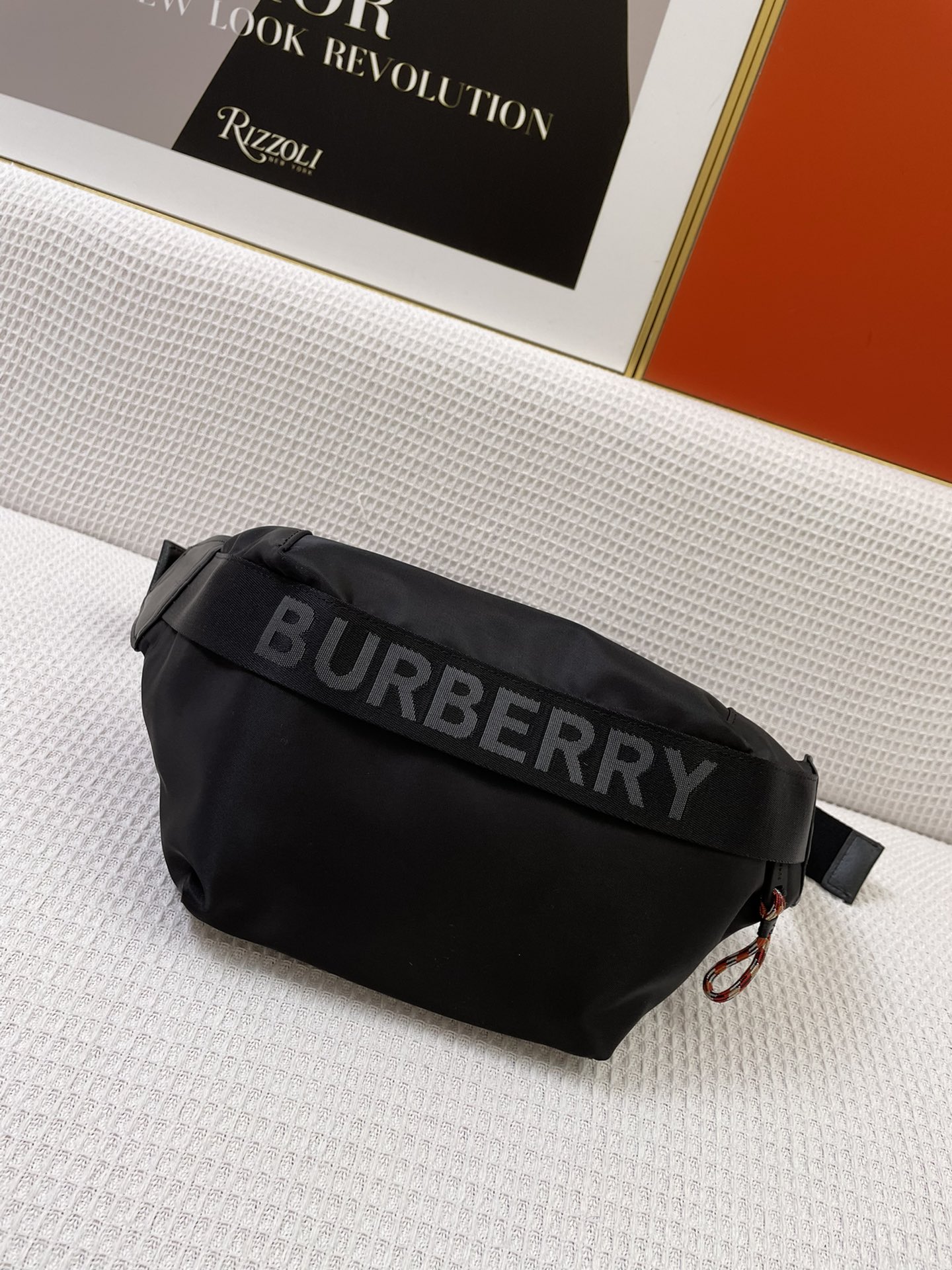Burberry’s waist bag, inspired by the street style of the 1990s, is crafted using nylon material and adorned with woven brand logos, complemented with exquisite leather trim. It can be worn as a crossbody bag or tied around the waist.