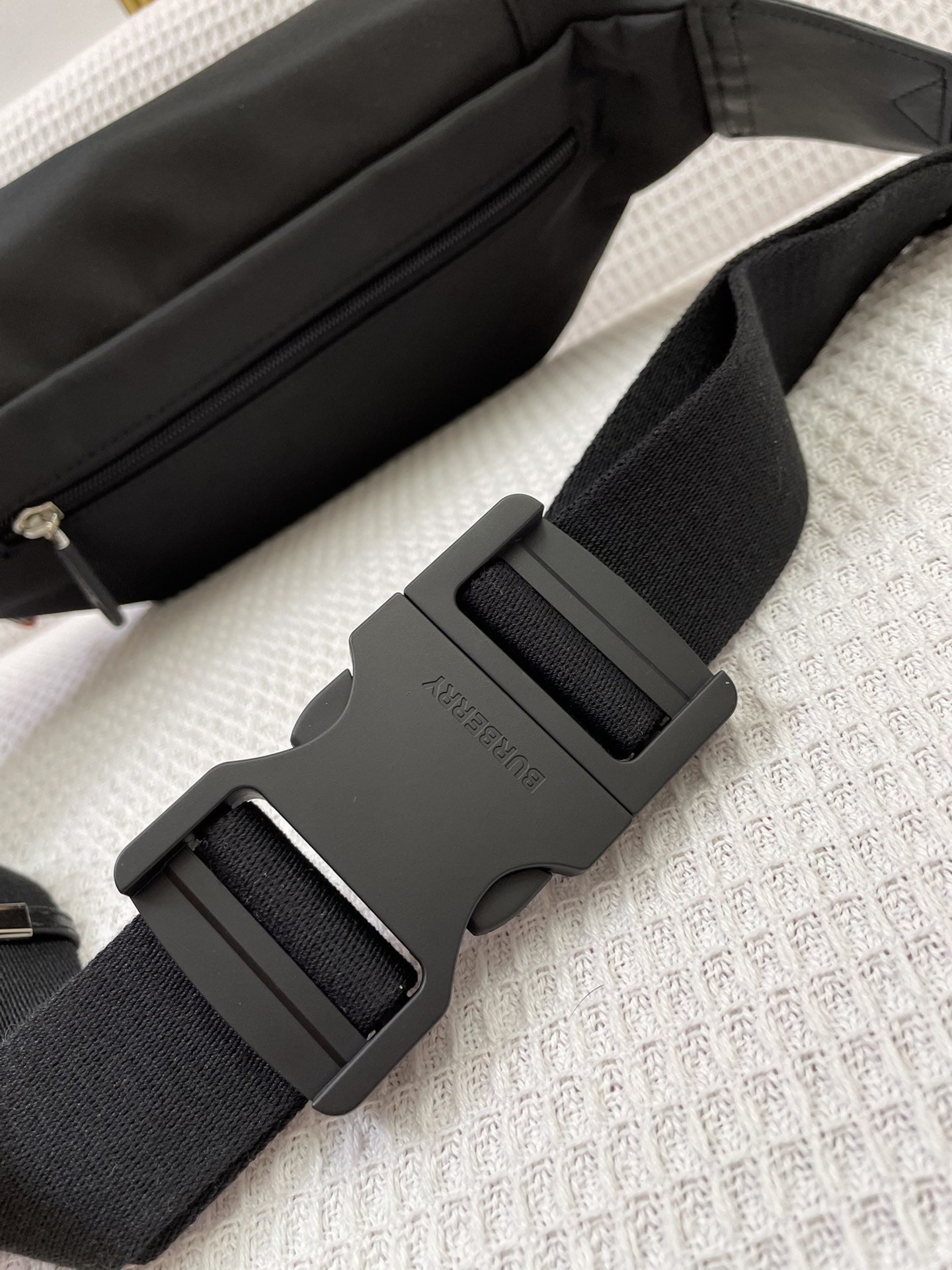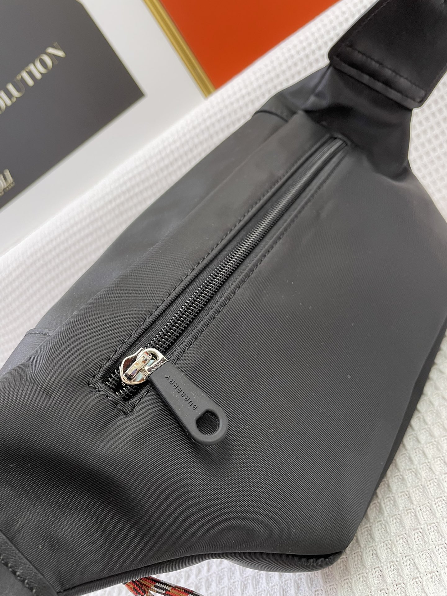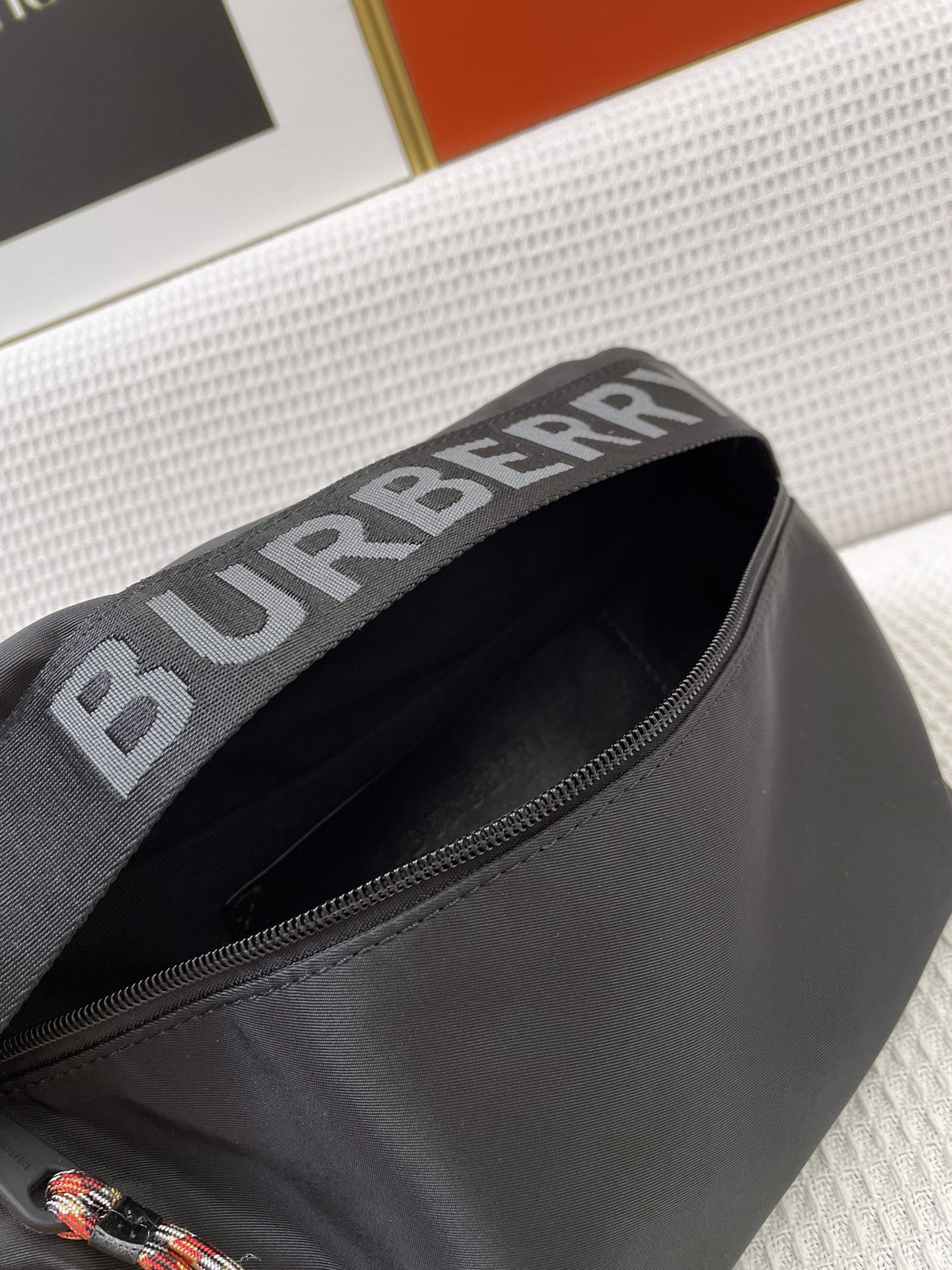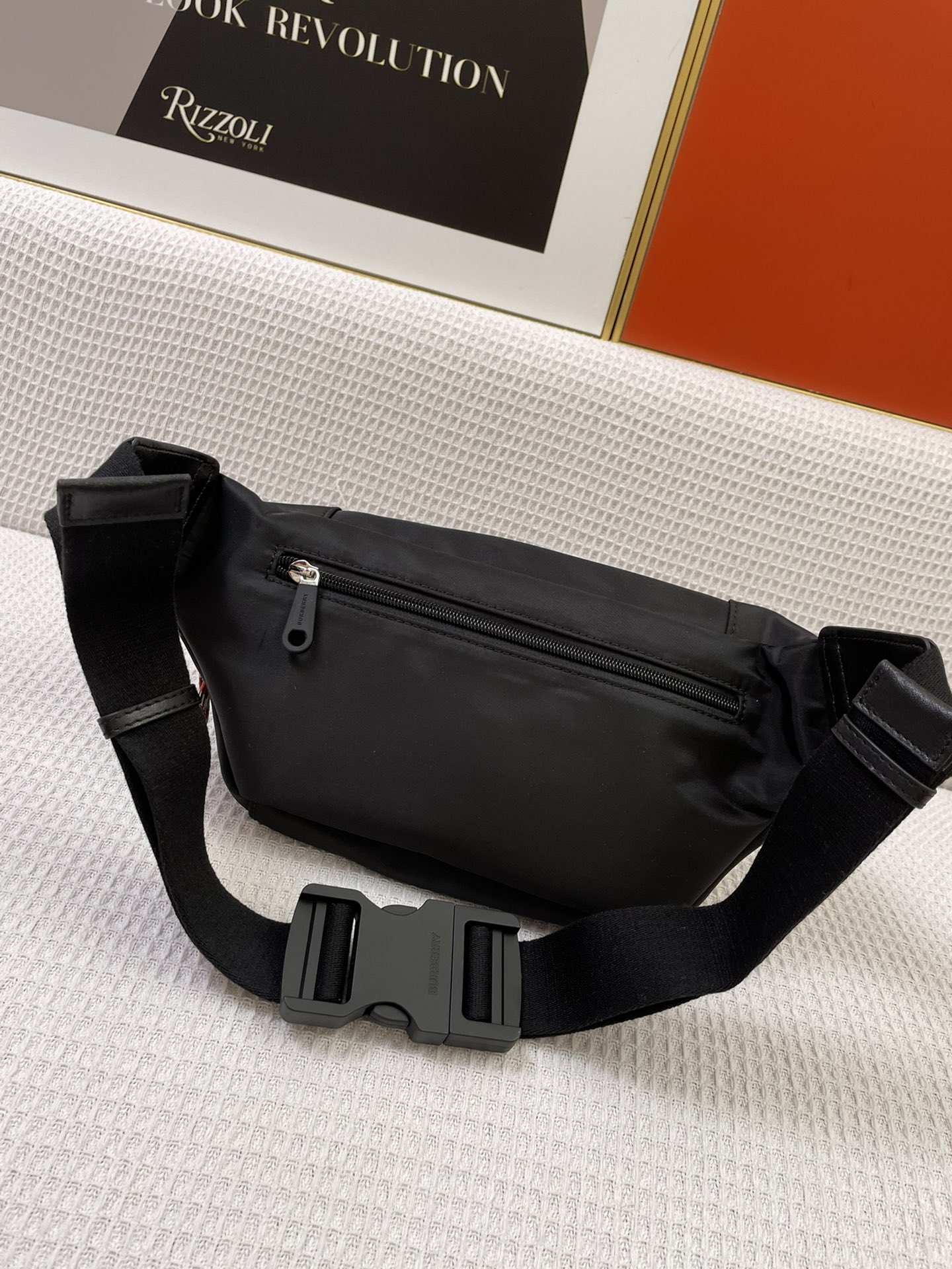 Burberry’s waist bag, inspired by the street style of the 1990s, is crafted using nylon material and adorned with woven brand logos, complemented with exquisite leather trim. It can be worn as a crossbody bag or tied around the waist.