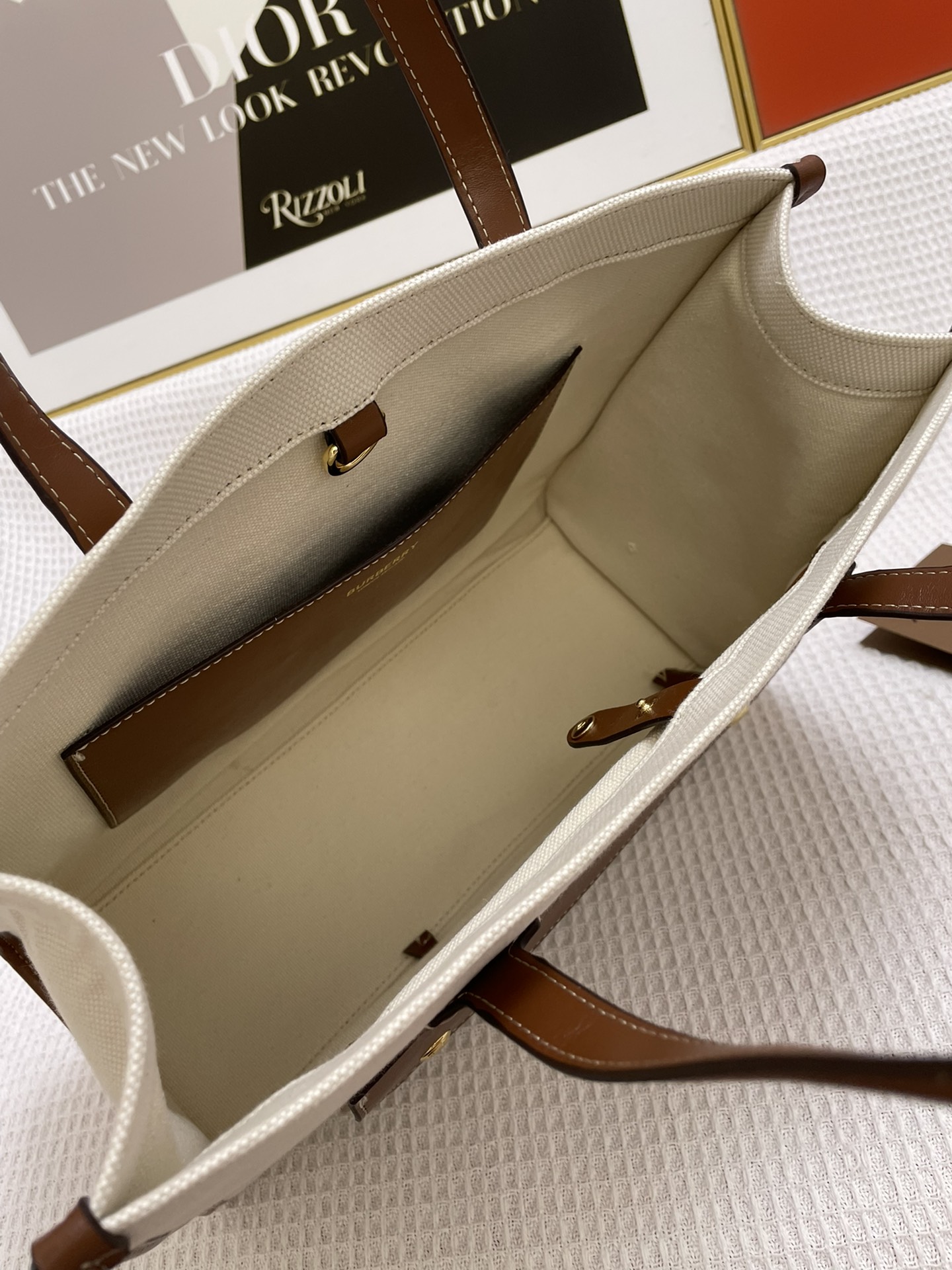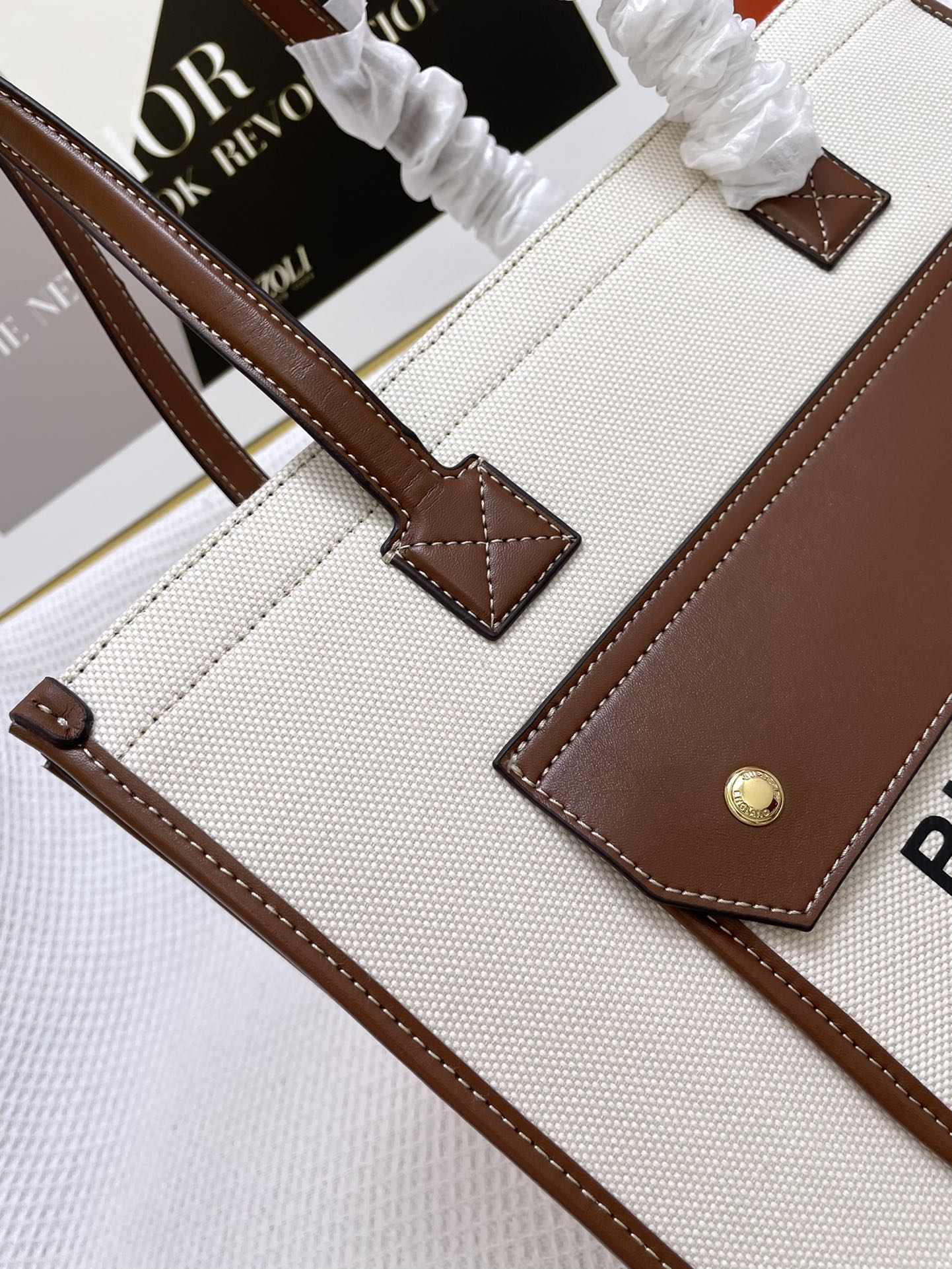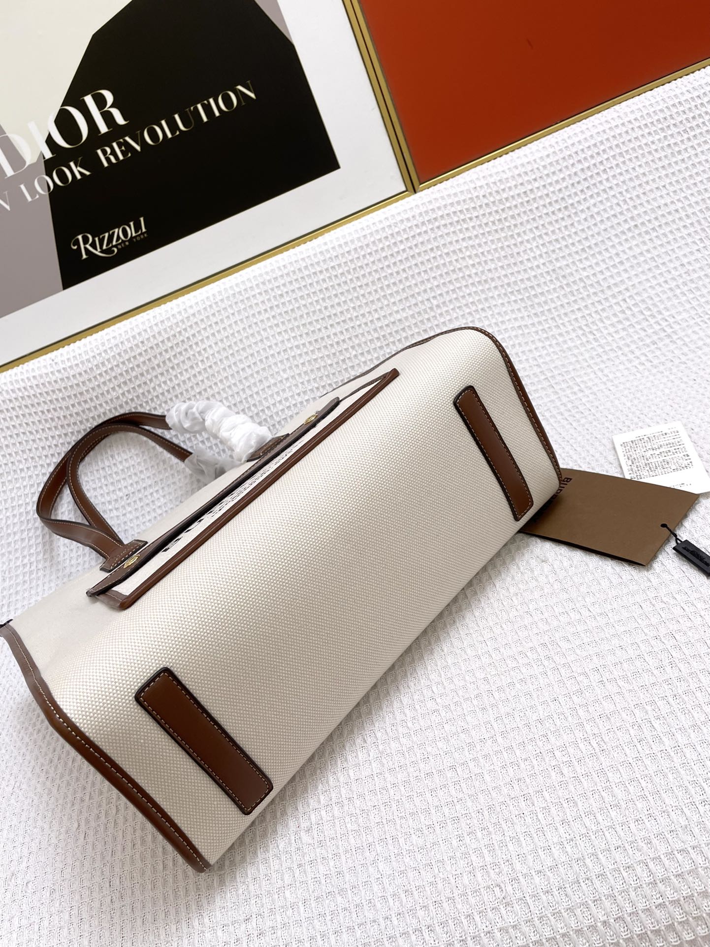 【Burberry Top-Grade Original】Dual-tone canvas and leather Freya tote bag, meticulously crafted in Italy, featuring a combination of grained leather and cotton canvas, adorned with the Horseferry brand print. Can be carried by the top handle or worn over the shoulder.