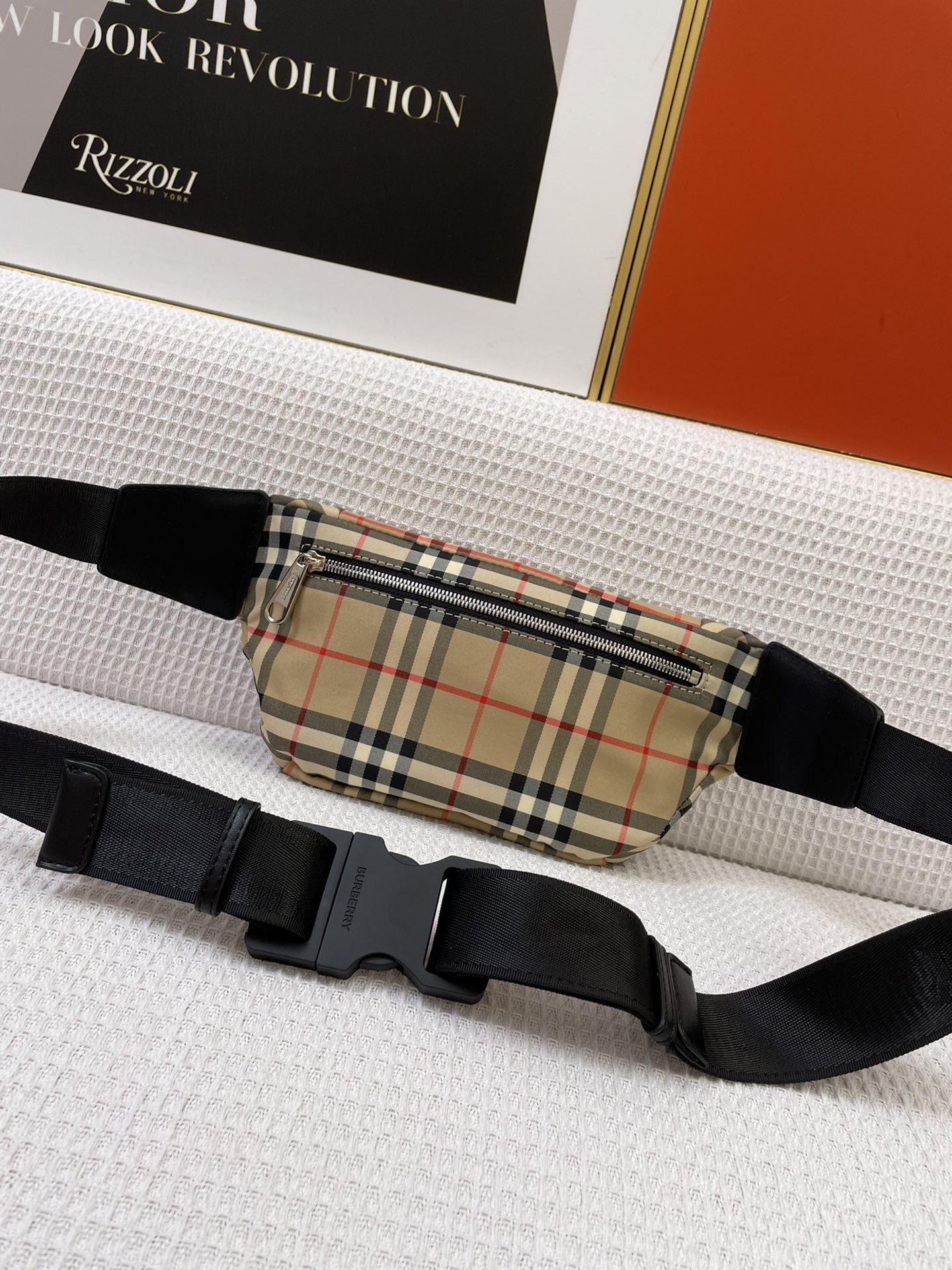 Burberry’s handbag draws inspiration from the street style of the 1990s. It is crafted using Vintage check patterned cotton, adorned with woven brand logos, and complemented with exquisite leather trim. It can be worn as a crossbody bag or tied around the waist.
