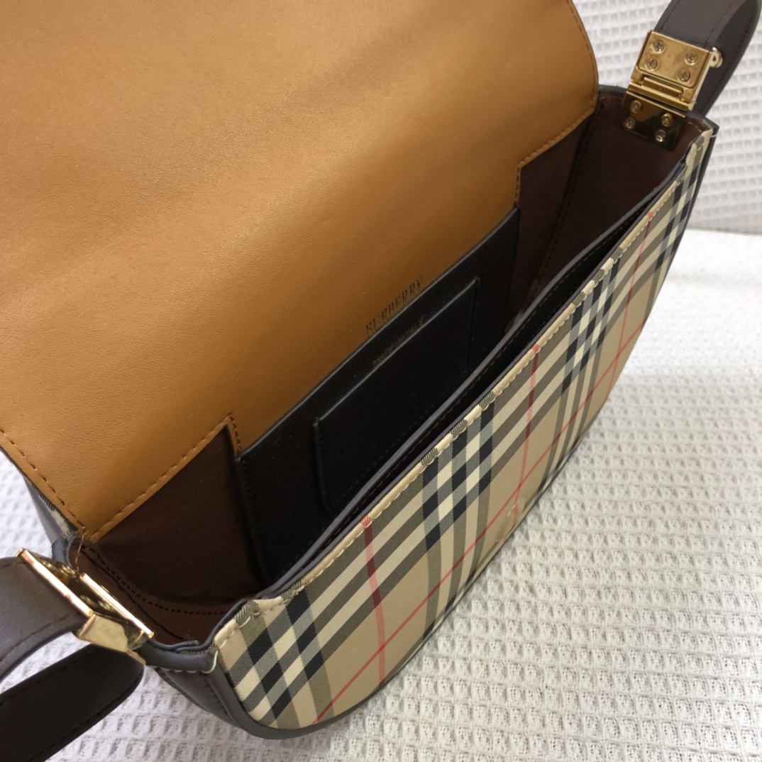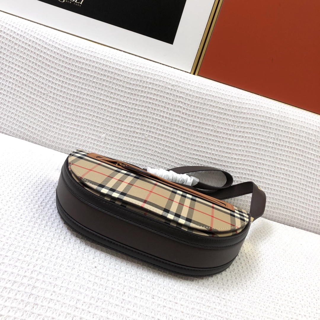 【Burberry Top-Grade Original】Fashion show style shoulder bag, featuring a slender and upright design. It is crafted from smooth Italian tanned leather and draws inspiration from the curved lines of the brand’s fashion show venue, the Olympia Exhibition Centre in London. It is adorned with gold-plated hardware and equipped with an exterior pocket and a zippered compartment for easy access to belongings.