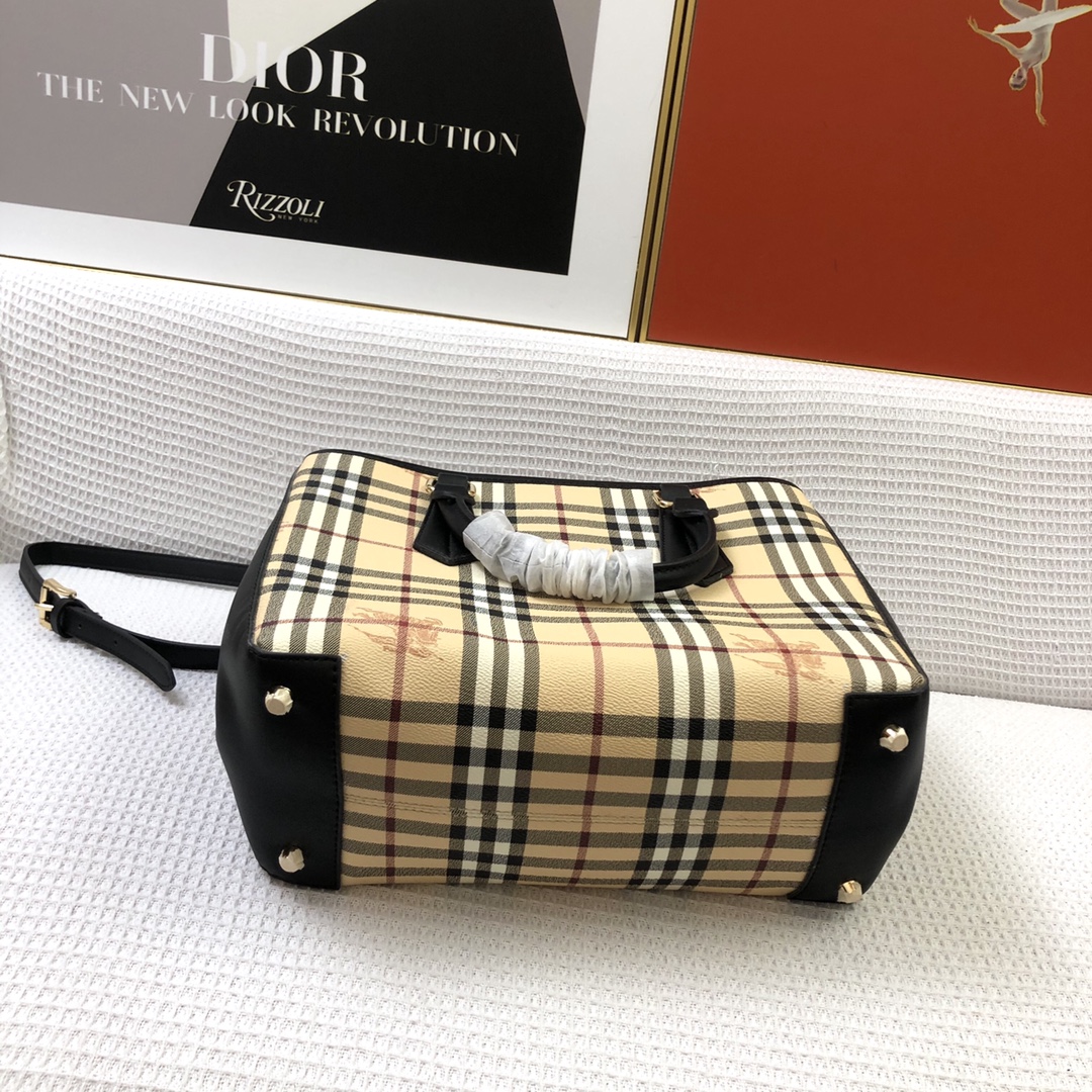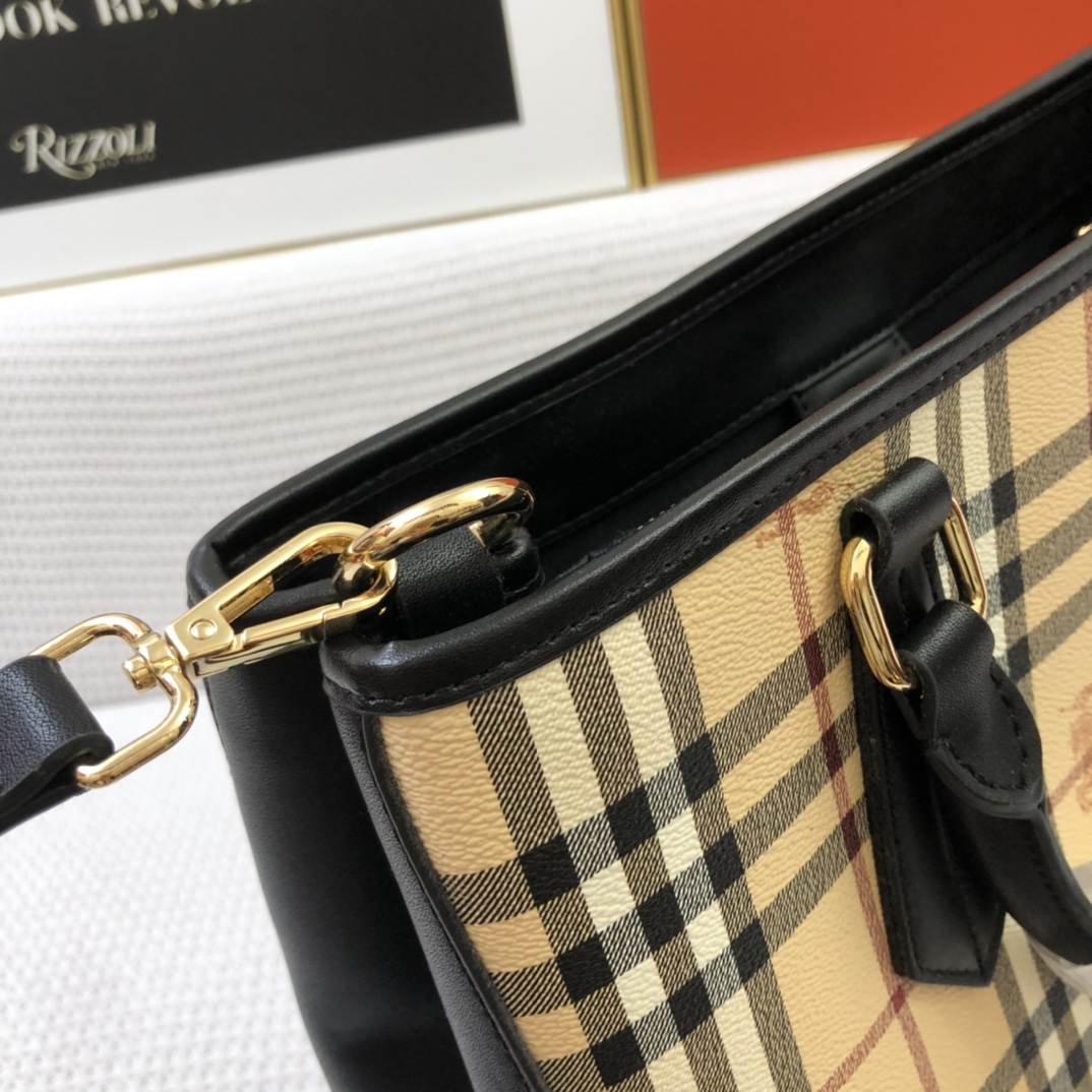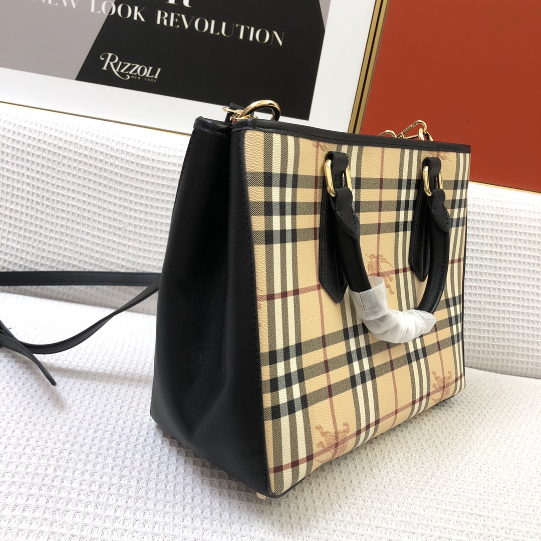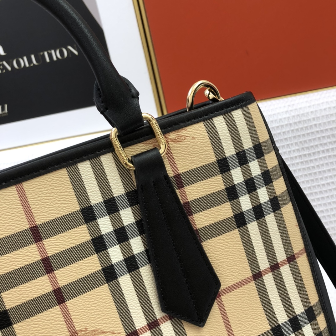 Burberry’s latest practical and durable canvas check shopping bag, featuring a special toothpick texture material combined with mag PVC, perfect for all seasons.