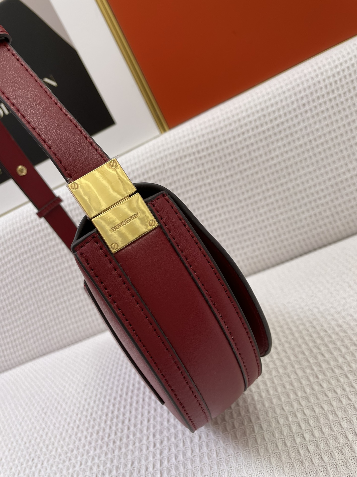 【Burberry Top-grade Original】 Fashion show shoulder bag, featuring a sleek and structured design. It is crafted from smooth, supple Italian leather and draws inspiration from the curved lines of the brand’s fashion show venue, Olympia Exhibition Centre in London. It is adorned with gold-plated hardware and equipped with external slip pockets and a zippered pocket for easy access to belongings.