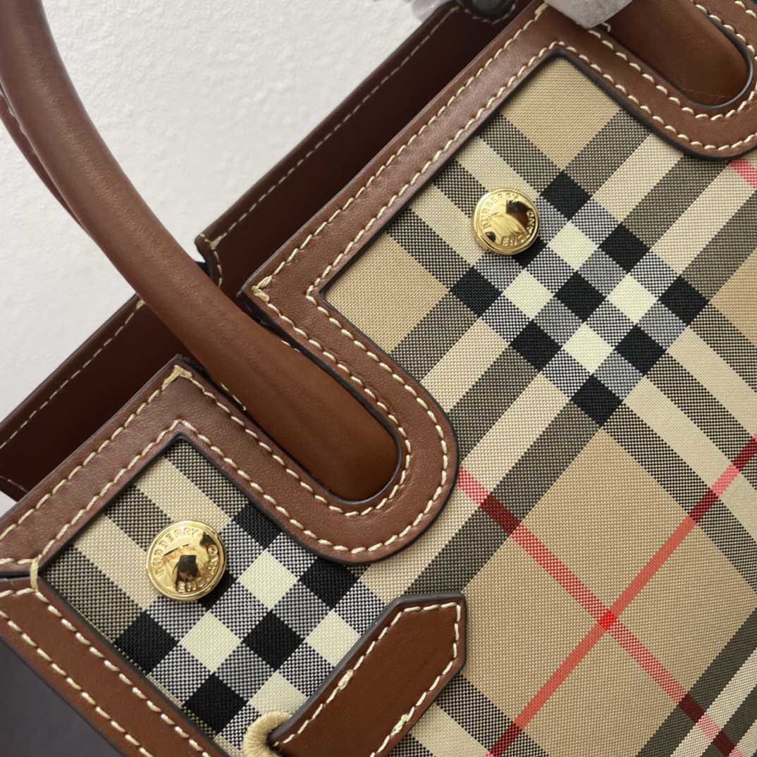 The “Title” collection from B brand showcases meticulously crafted vintage-inspired pieces, featuring a retro check pattern. It is embellished with sleek leather trimmings and three metal studs. The bag can be carried by the top handle for a handheld look or transformed into a shoulder or backpack style by removing the detachable strap.