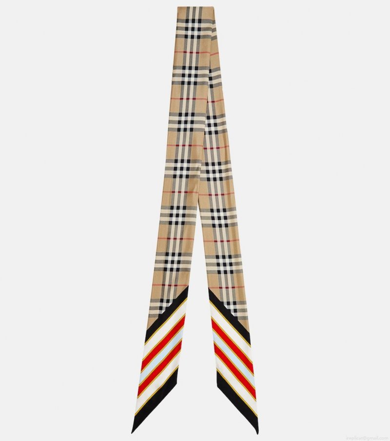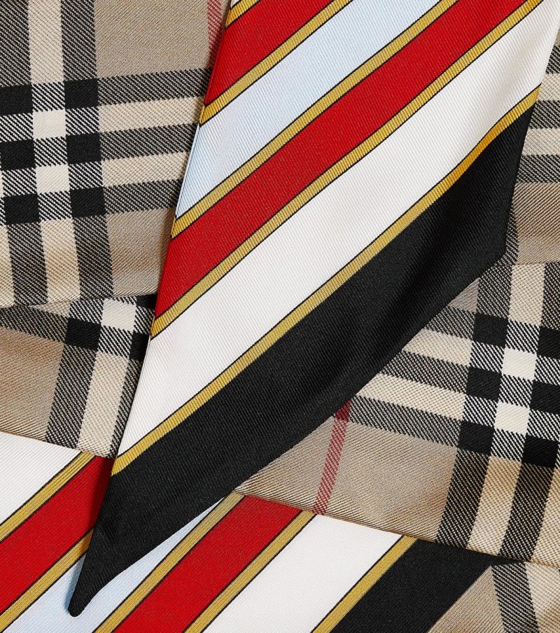 Burberry's Skinny silk scarf is printed in the iconic Vintage Check pattern and framed with seasonal stripes. It has the words 'Burberry London England' printed on the reverse side, a symbol of the label's heritage.