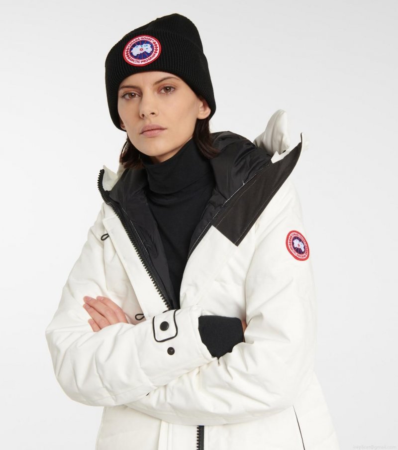 Keeping warm is essential in winter, so invest in a functional beanie from outerwear experts Canada Goose. In wear-with-anything black, this ribbed design is made from wool that will help to regulate the body's temperature, and it features a brightly colored logo patch on its folded brim.