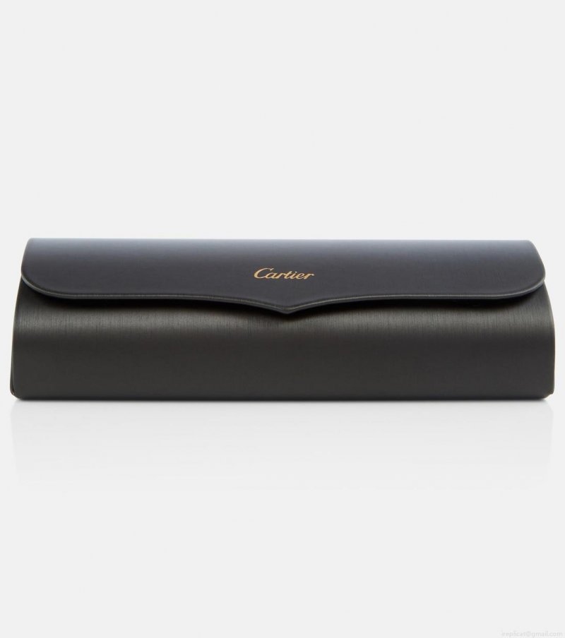 Cartier's expertise in jewelry-making extends to the Cartier Eyewear Collection, a line of exquisite styles for everyday wear. These frames have an angular cat-eye silhouette and are adorned with interlocked C gold-toned hardware on the temples.