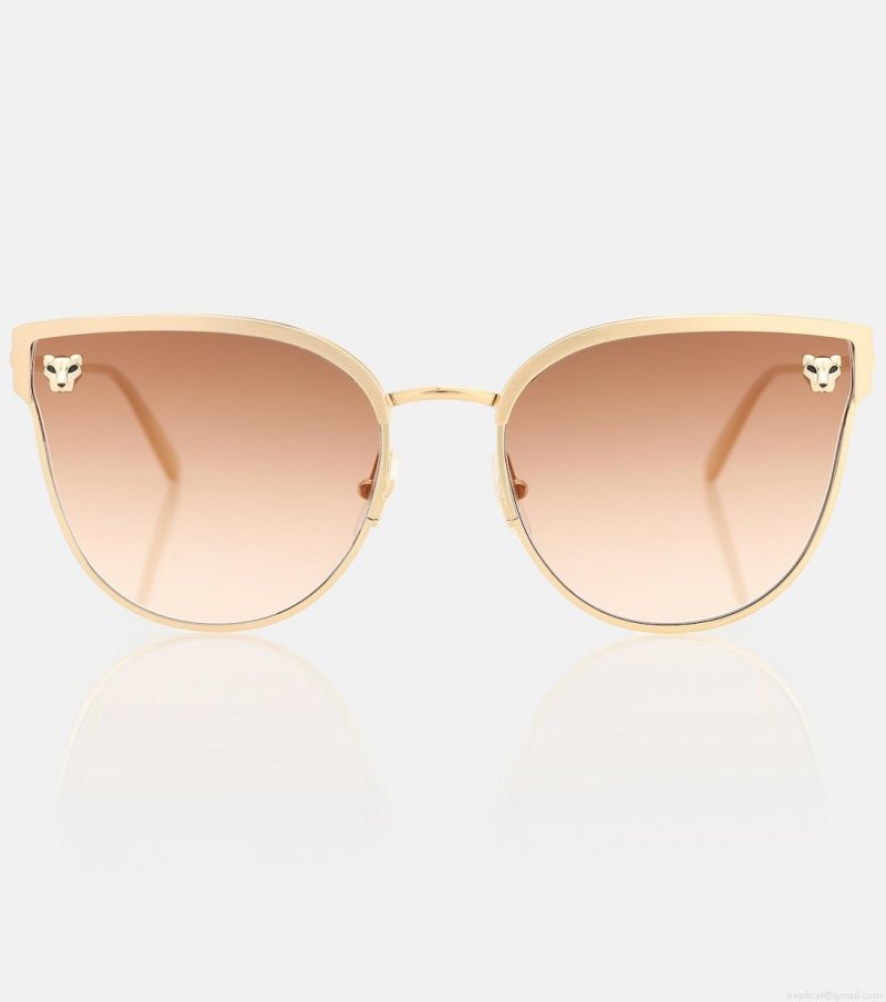 From the Panthère de Cartier line, these sunglasses from Cartier Eyewear Collection channel the enigmatic character of the panther, a symbol of the brand since 1914. This pair has been crafted in France from golden metal, with its cat-eye frames complemented with brown lenses.