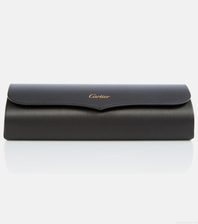 From the Panthère de Cartier collection that celebrates the Panthère de Cartier rectangular sunglasses. This rectangular style creates a commanding presence. Two hardware panther heads adorn the sides of this style's golden flash lenses.