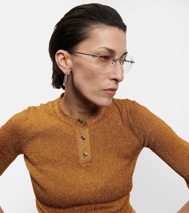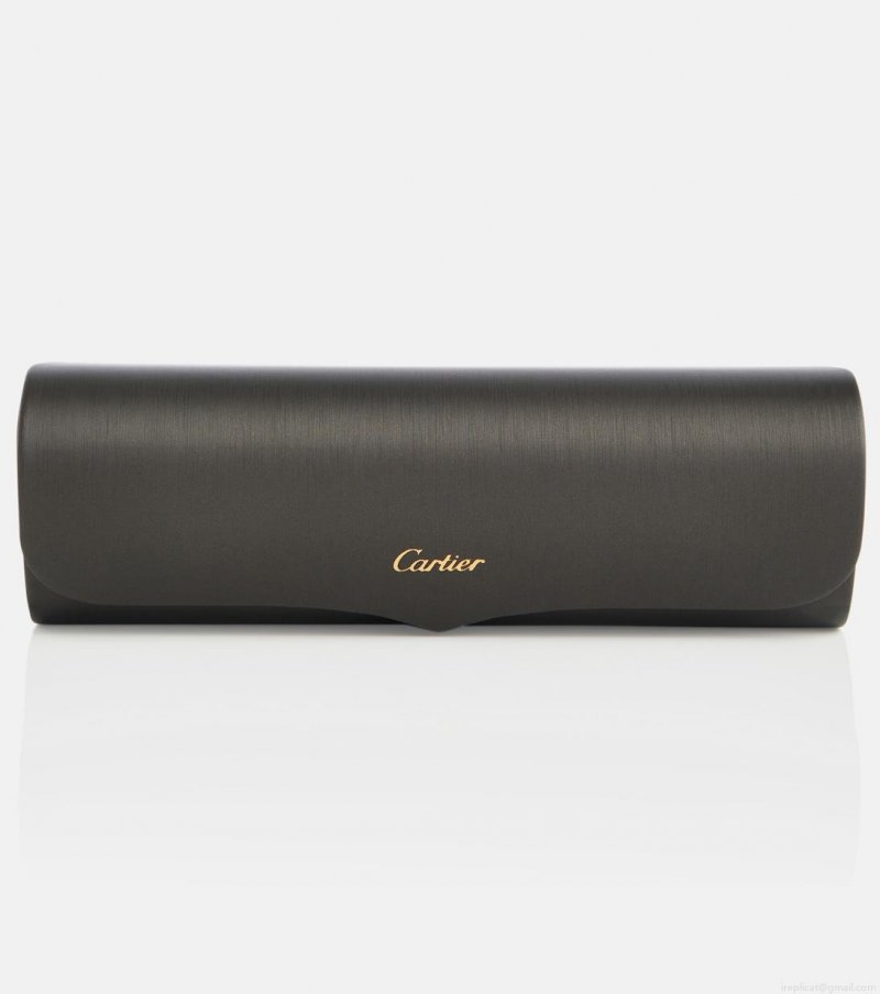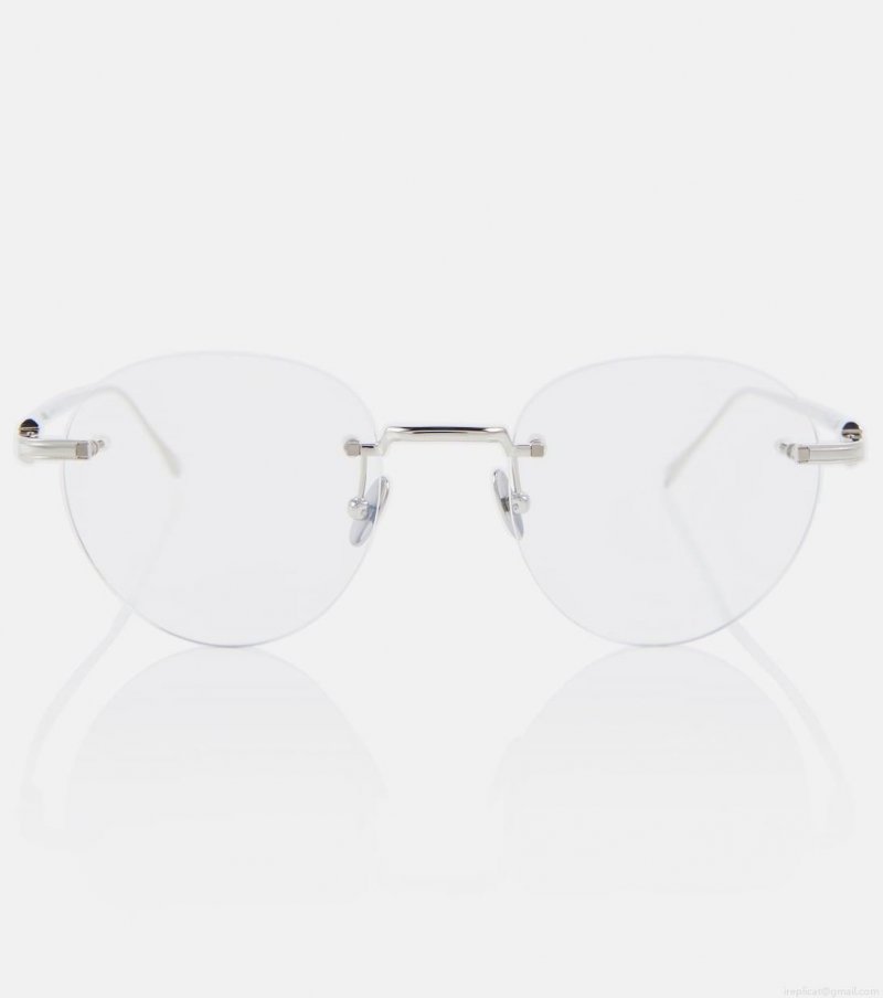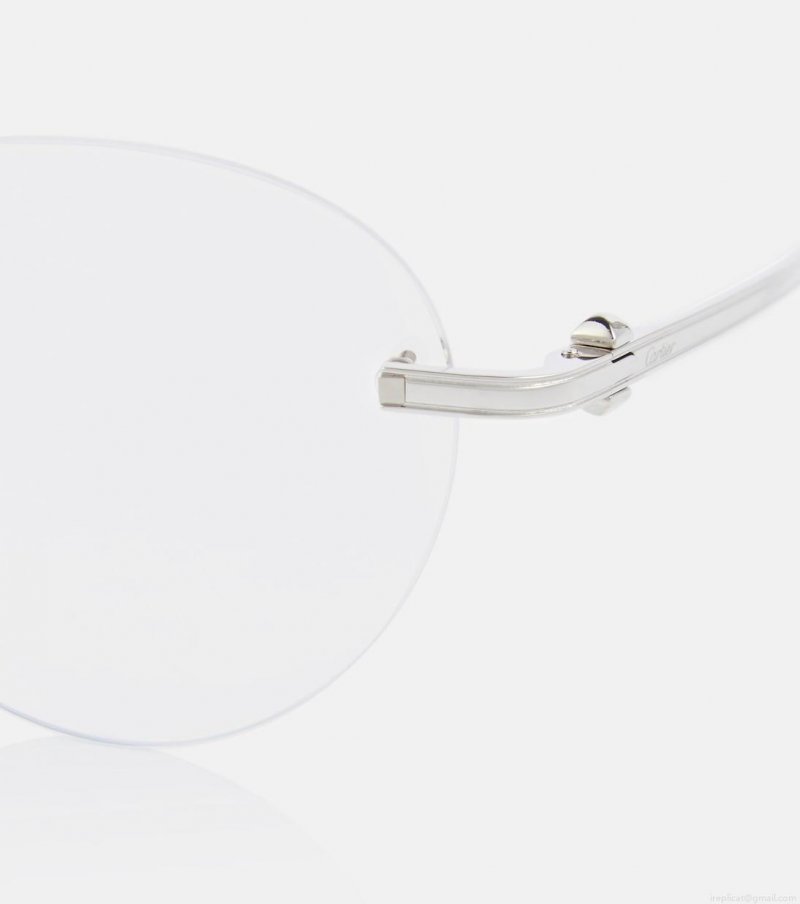 The Pasha de Cartier glasses from Cartier Eyewear Collection are timeless and understated in their appearance. The rimless pair has rounded lenses that connect to logo-engraved arms with curved ends for a secure fit.
