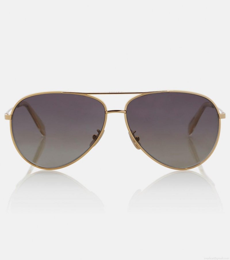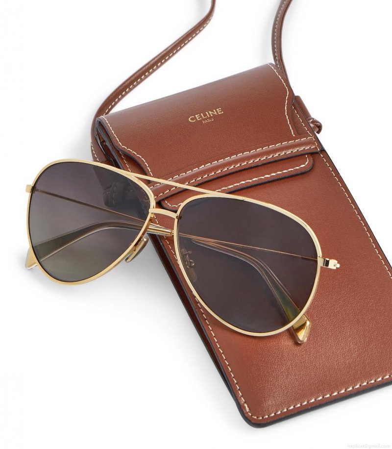 Celine Eyewear's aviator sunglasses are a classic silhouette that will never go out of style. Made from lightweight golden metal, they have adjustable nosepads and capped earpieces for a comfortable, secure fit. They come in an elegant brown leather pouch that can be carried over the shoulder or across the body.