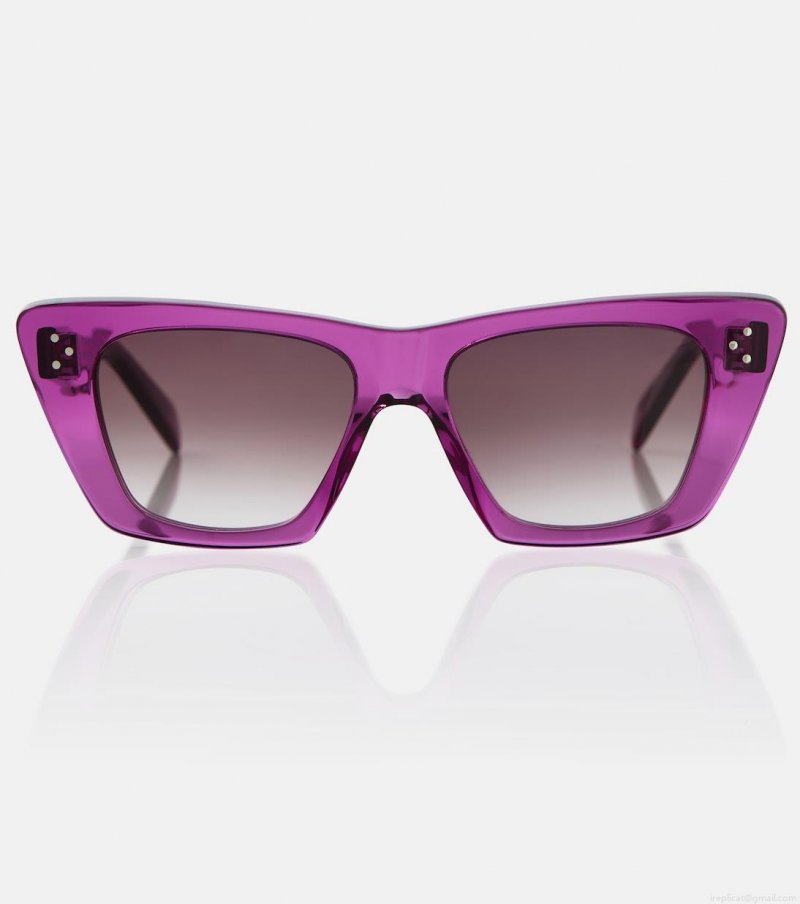 CELINE Eyewear looks to the future with designs like these purple sunglasses. Made in Italy from transparent acetate, they have an angular cat-eye silhouette with wide temples and gradient grey lenses.