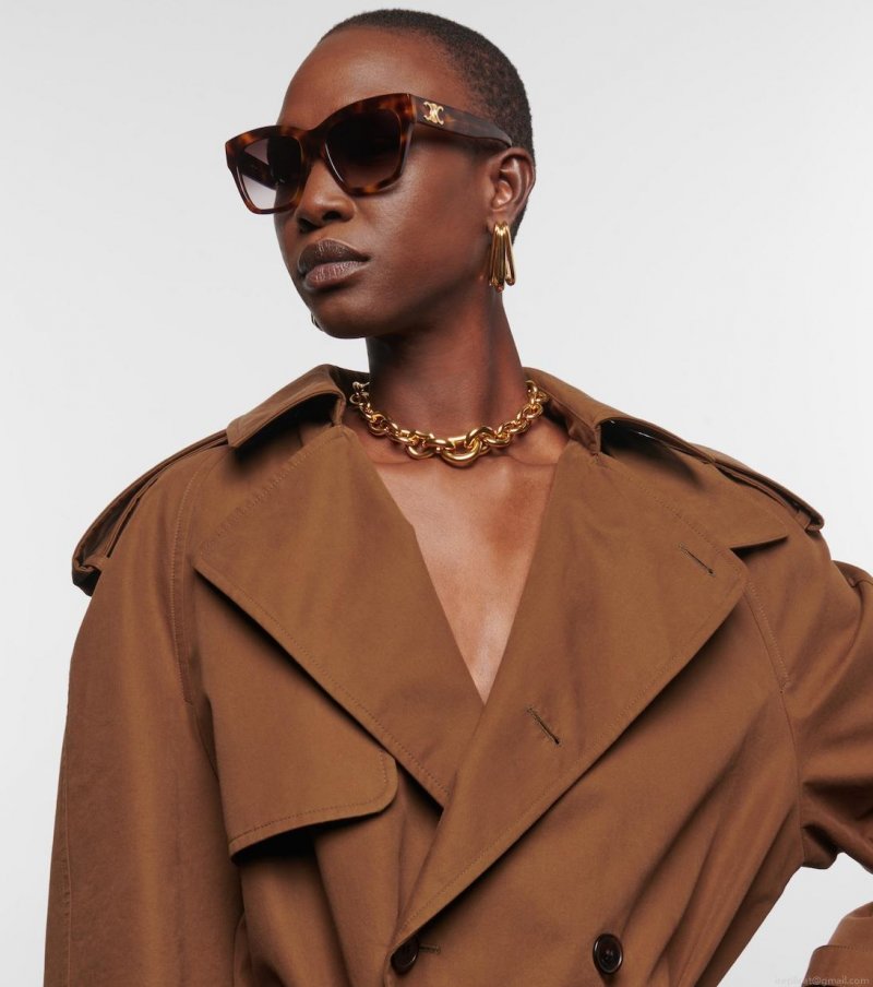 Celine Eyewear looks to the future with designs like these tortoiseshell sunglasses. Made in Italy from acetate, they have an angular cat-eye silhouette with wide temples and gold-tone monogram hardware.