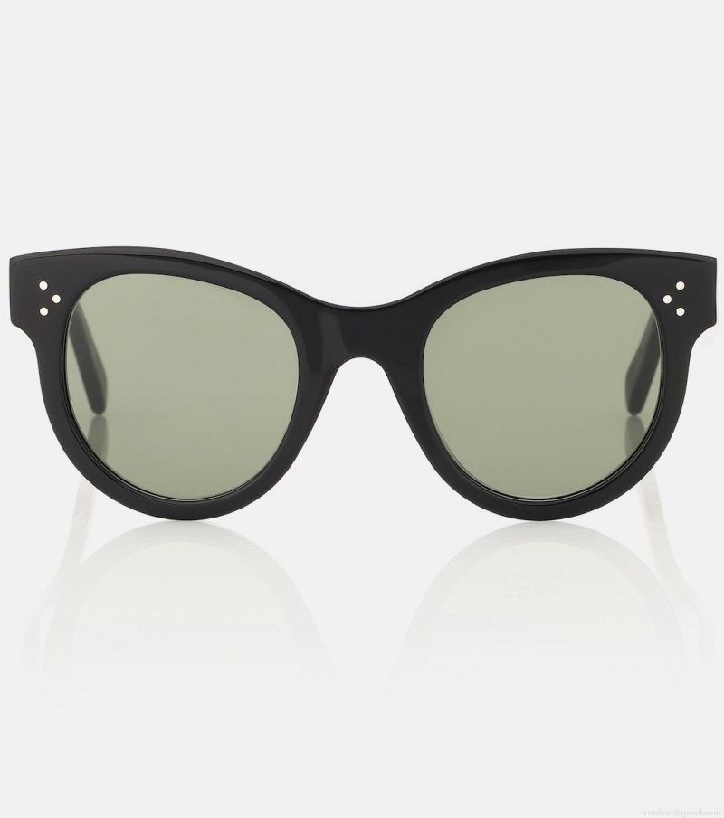 Frame your face in CELINE Eyewear's enduringly elegant style with this pair of rounded cat-eye sunglasses. Made in Italy from lightweight black acetate frames, the design features protective lenses with a green tint and comes presented in a sleek leather pouch.