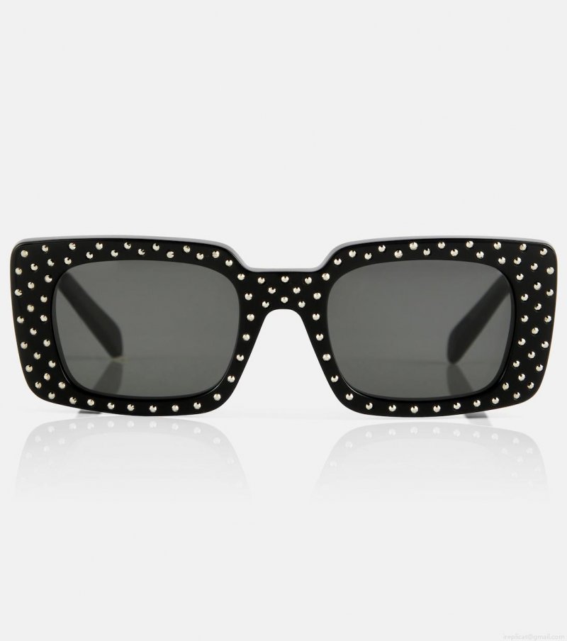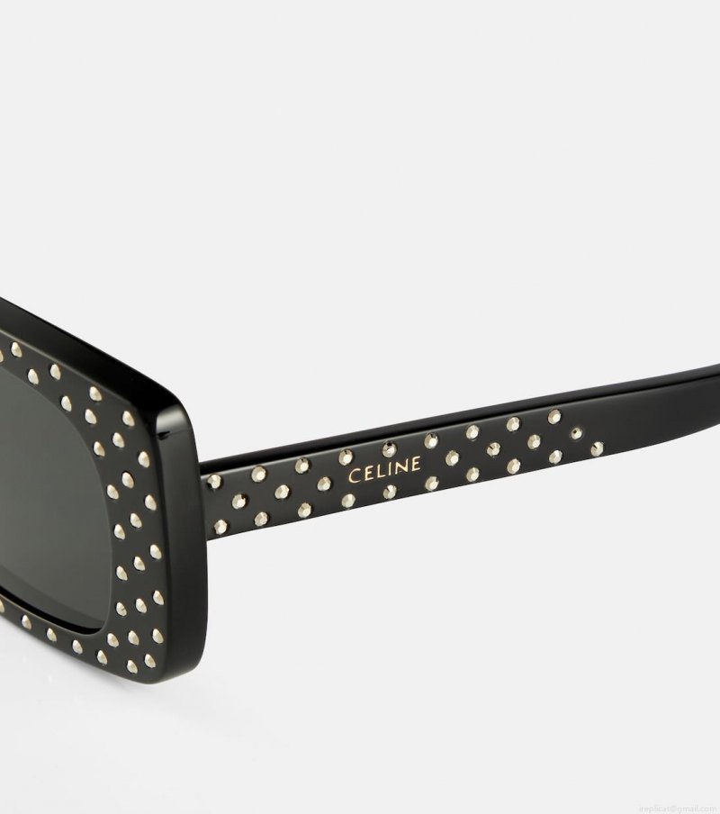 These rectangular sunglasses from Celine Eyewear are embellished with crystals for a dramatic effect. The pair is made from glossy black acetate with tonal lenses. Please note the color of the protective case may vary.