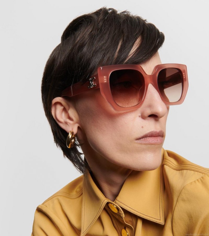 Made from durable acetate, these sunglasses from Celine Eyewear have oversized square frames with dark tinted lenses and silver-tone logo plaques on the temples. They come in a protective case, the color of which may vary.