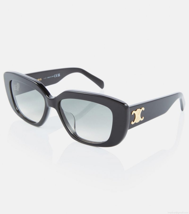 These Celine Eyewear sunglasses are made in Italy from black acetate and shaped into an elongated squared frame. They feature gradient lenses and gold-toned hardware on the temples.