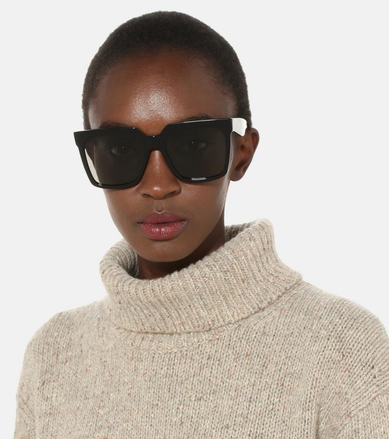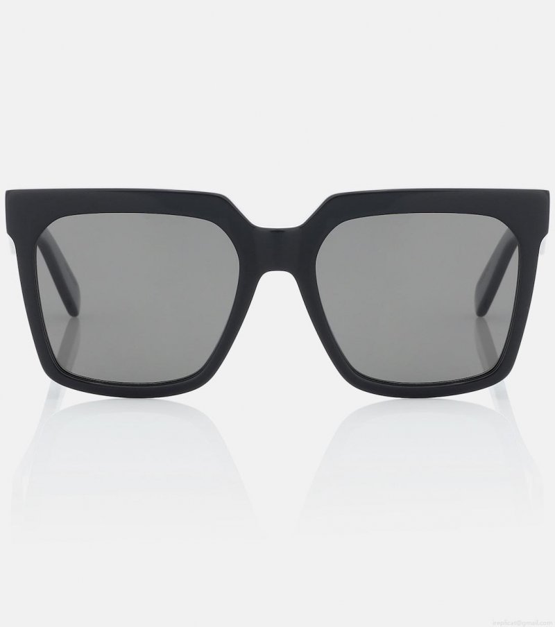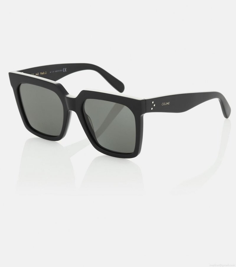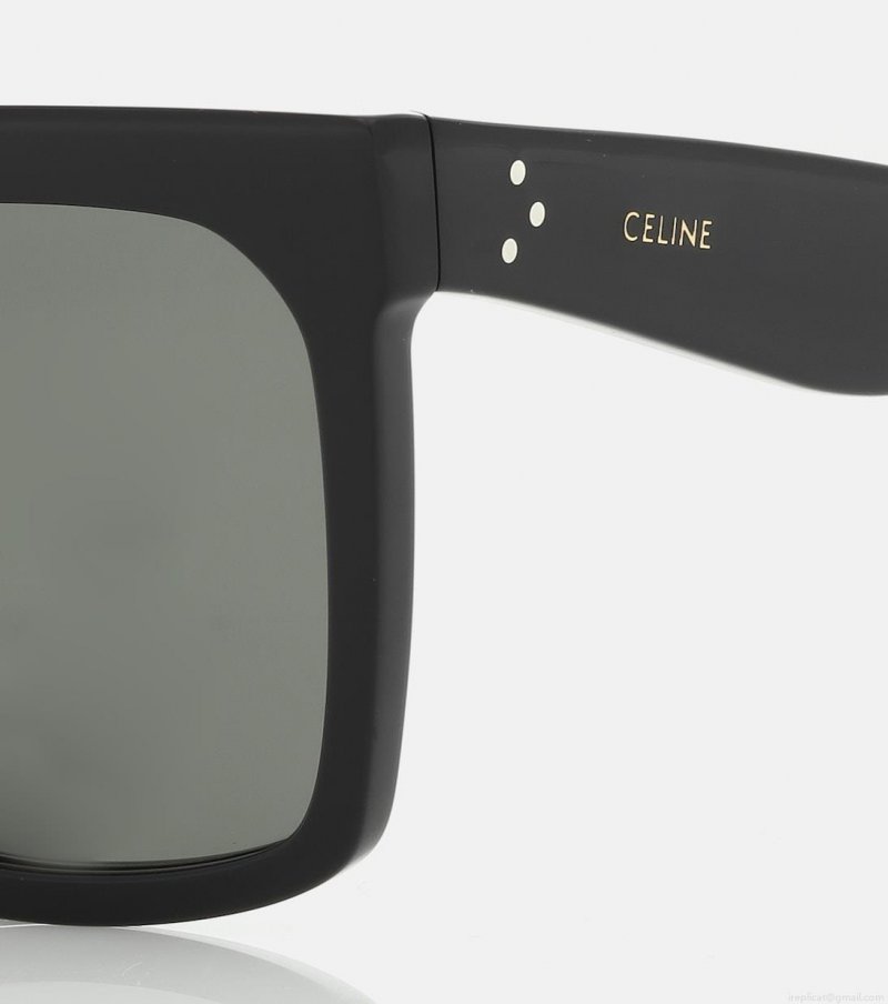 This pair of square sunglasses from CELINE Eyewear is oversized for the perfect amount of coverage. The dramatic silhouette has been crafted in Italy from glossy black acetate with tonal lenses and the label's signature three dot motif at the temple. Wear this classic design to complement sharp suits.
