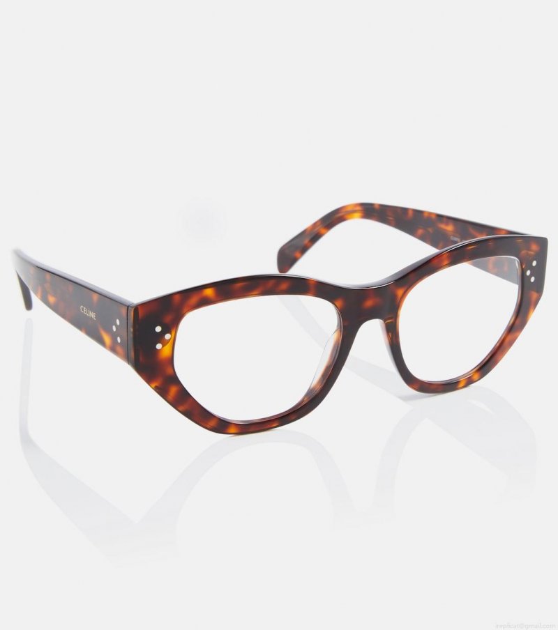 Made from acetate with a tortoiseshell effect, these glasses from Celine Eyewear have cat-eye frames and clear lenses that can be swapped for prescriptions. They come in a protective case, the color of which may vary.