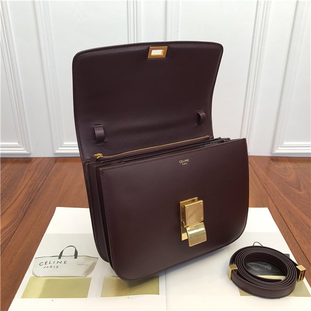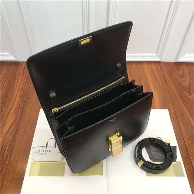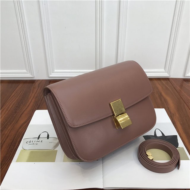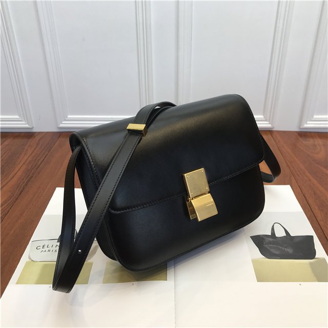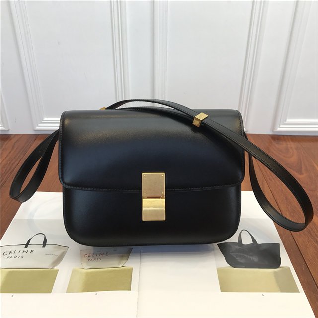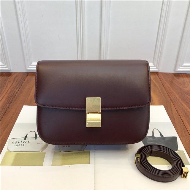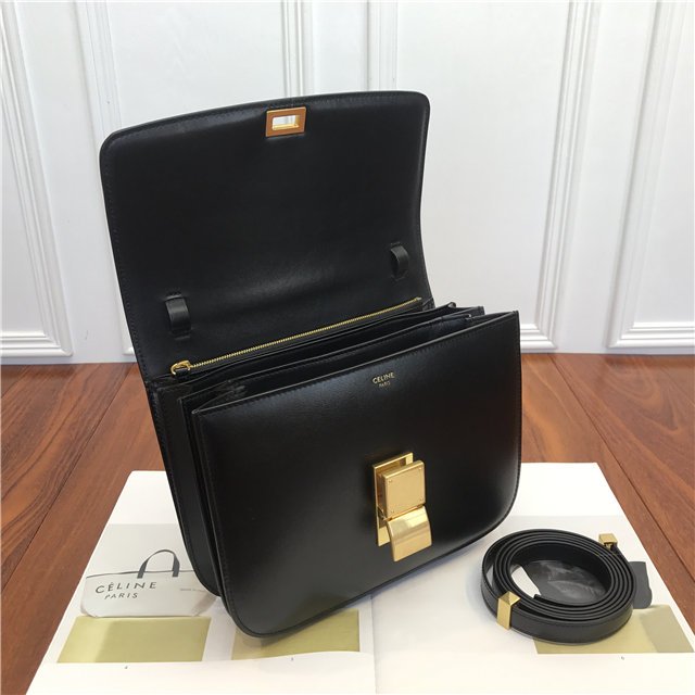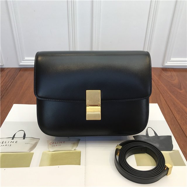 MEDIUM CLASSIC BAG IN BOX CALFSKIN WITH AN ADJUSTABLE AND REMOVABLE LEATHER STRAP AND A METALLIC CLASP CLOSURE.